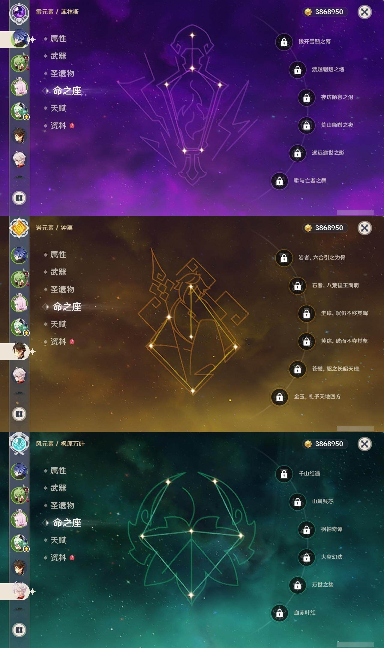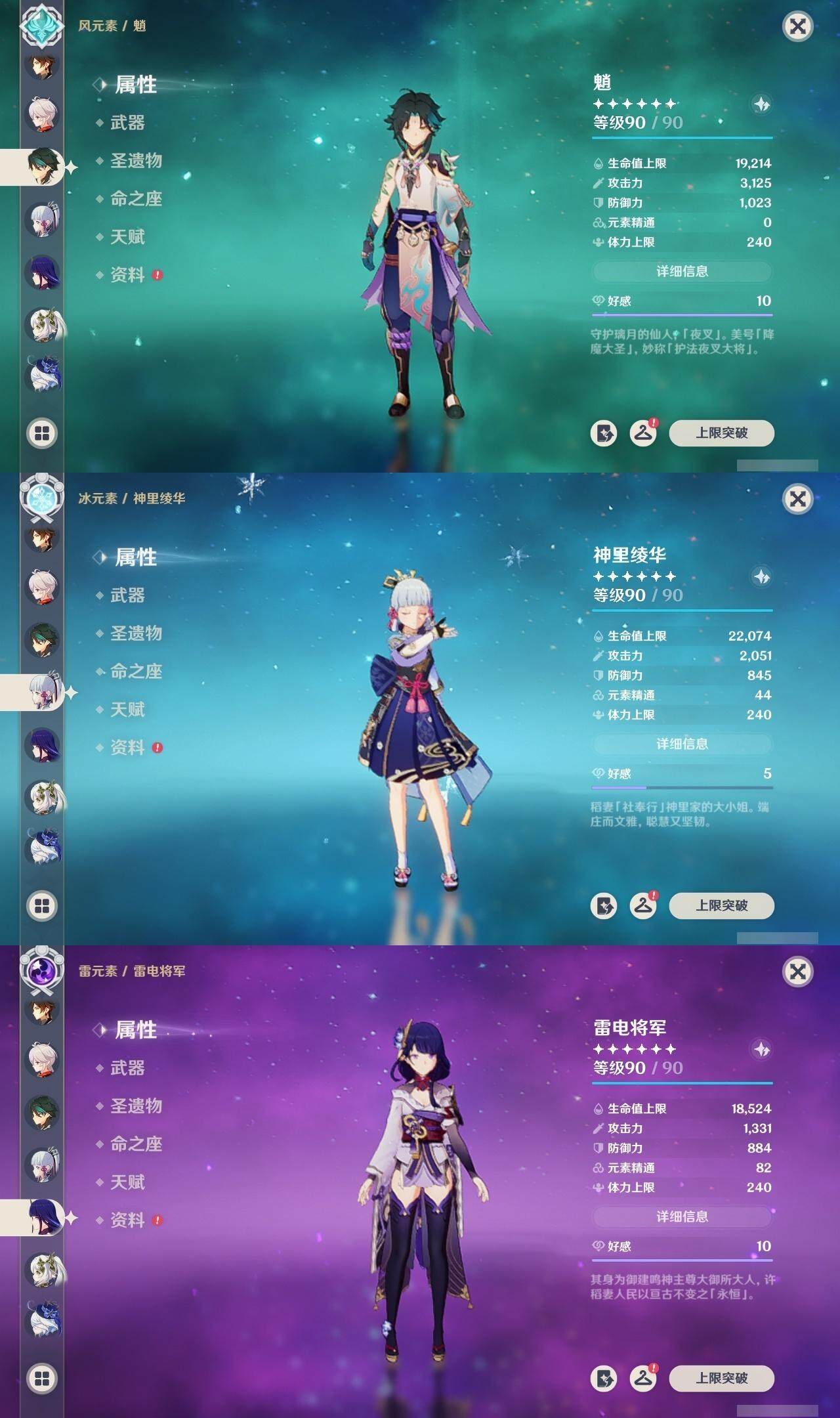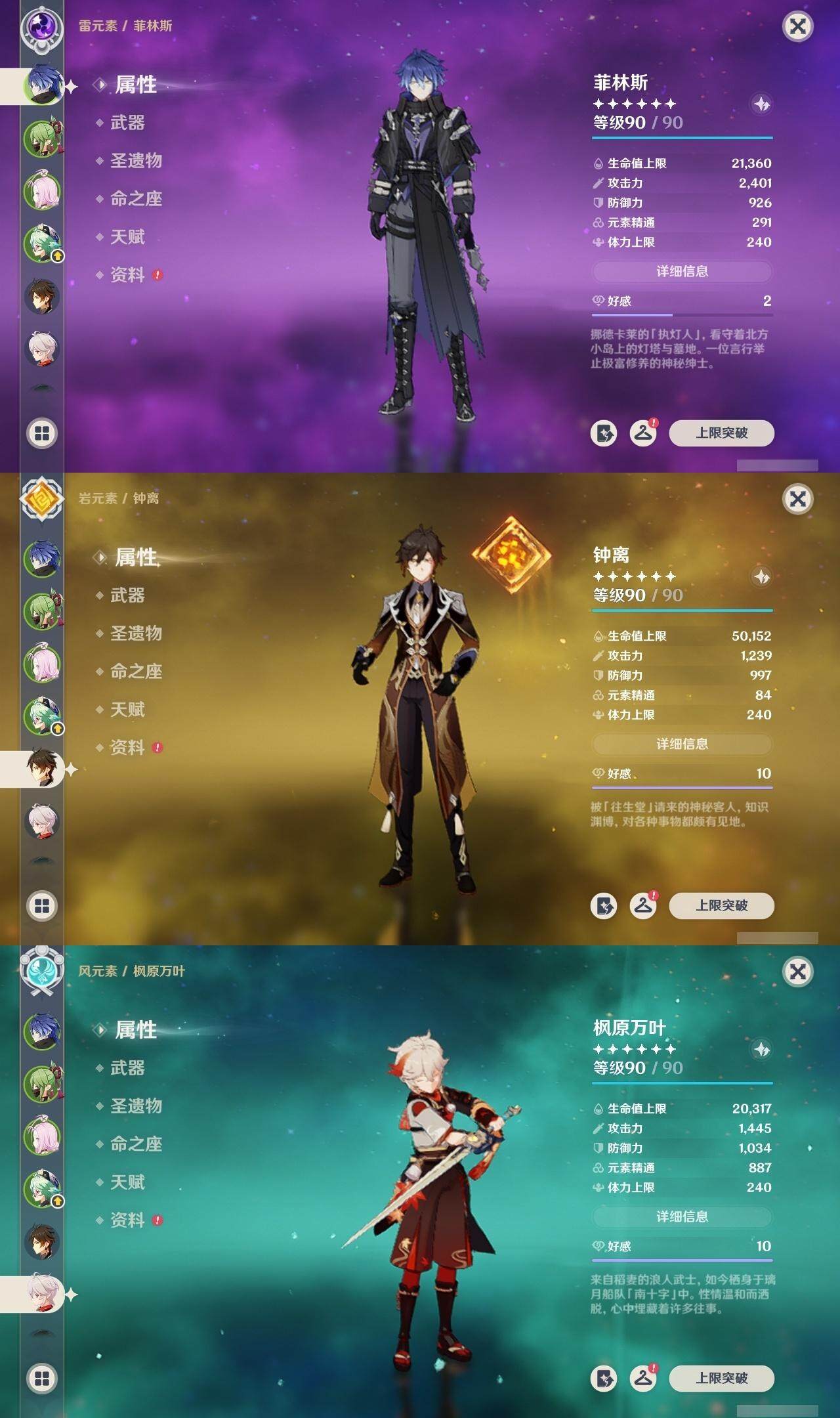 钟离,枫原万叶,魈,神里凌华,雷电将军,达达利亚,琴,甘雨,莫娜,刻晴