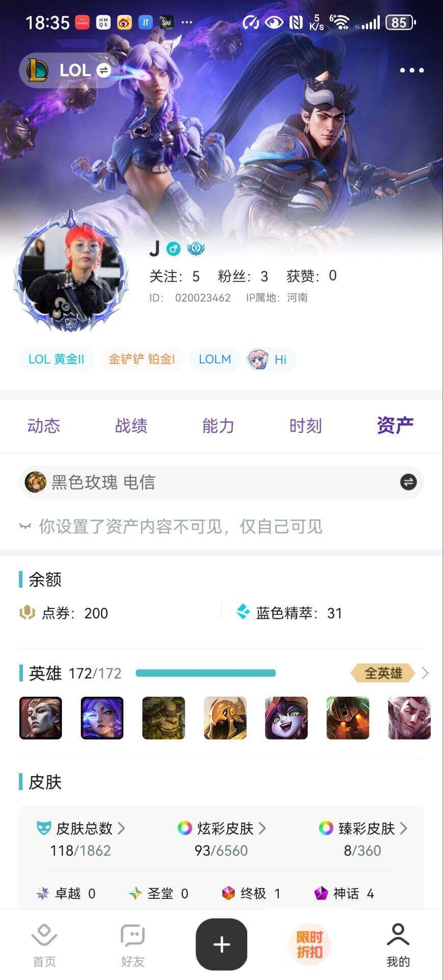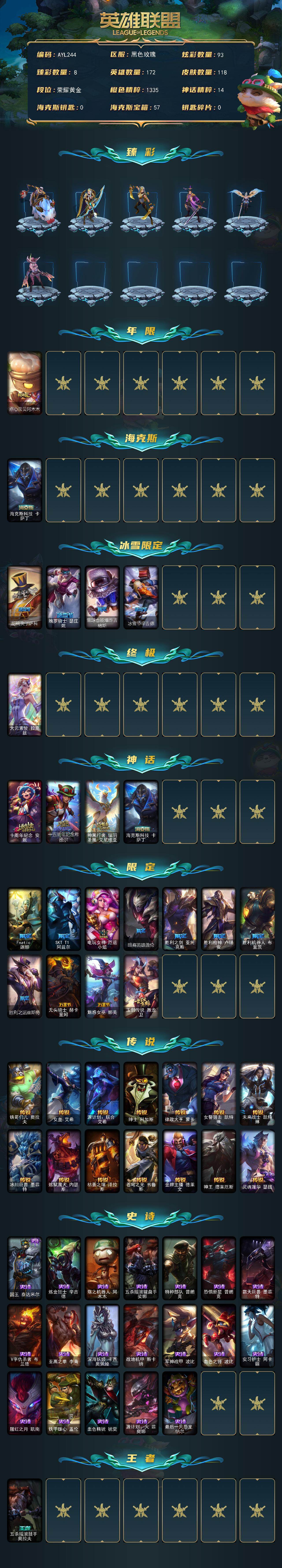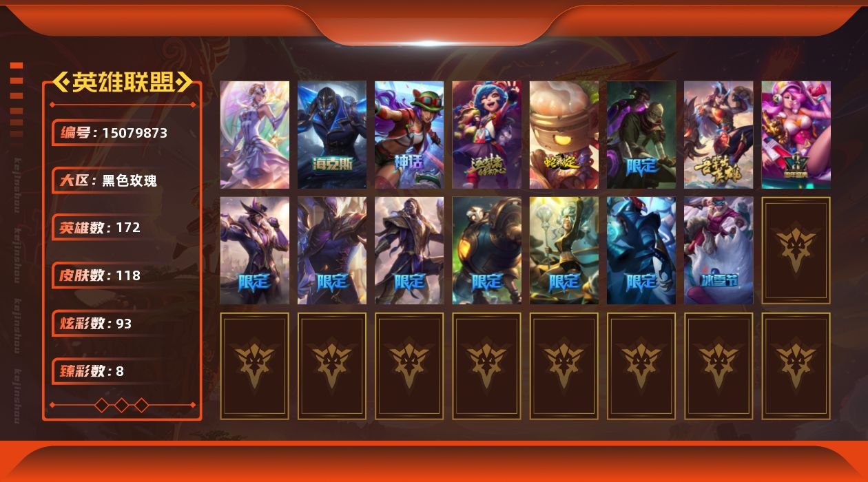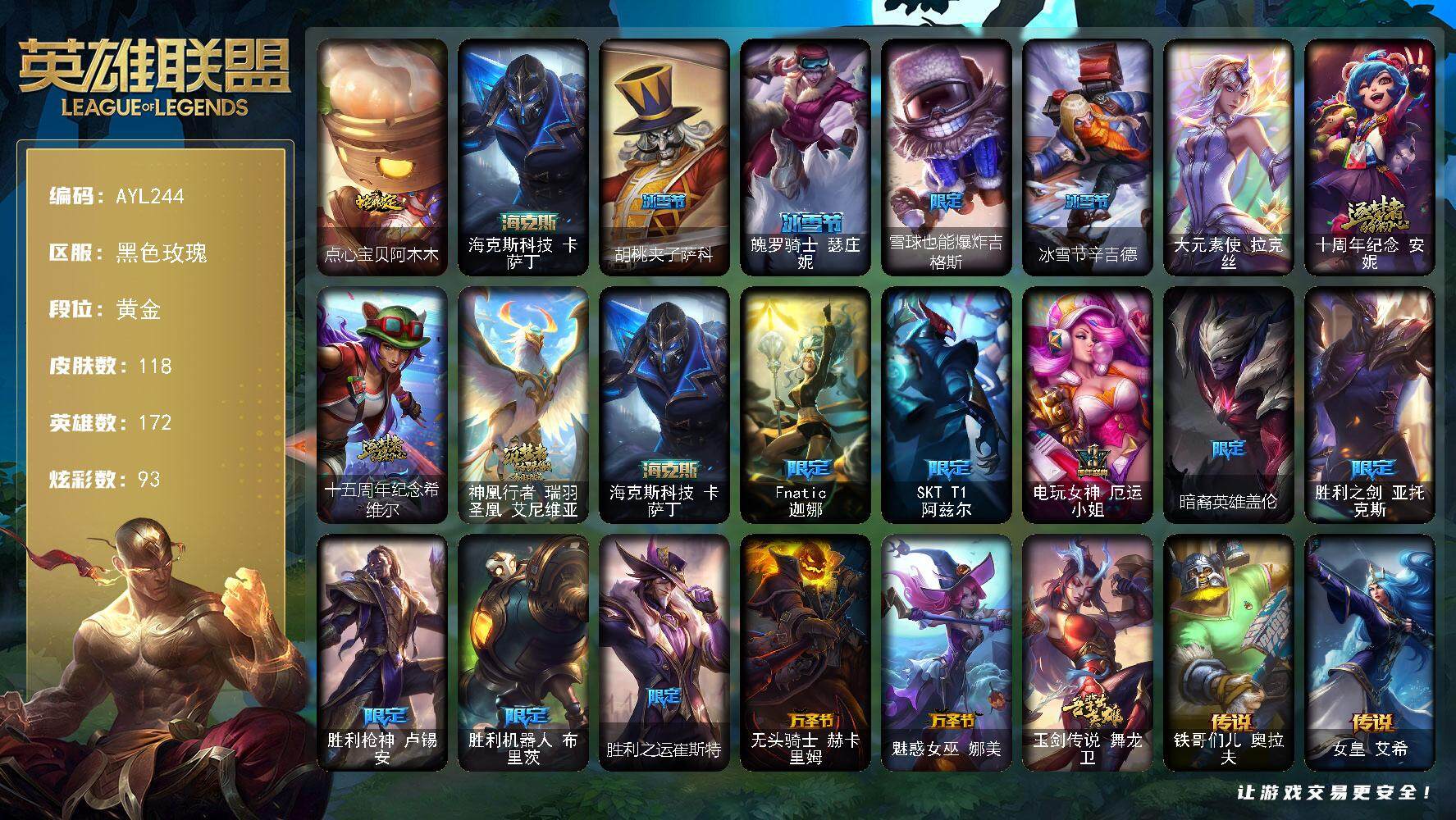 [15079873]可二次【特价出售/店主推荐】黄金段位-172英雄-118皮肤-93炫彩-1终极-4神话-17限定-14传说-19史诗