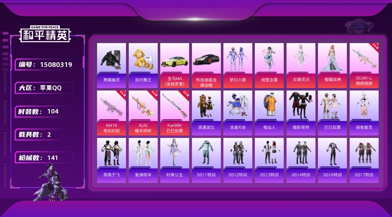 [15080319]【店主推荐捡漏号!可直接换绑】地铁满天赋身法素材号 苹果 手Q-4粉装-4特效枪-2载具-1粉色飞行器-43223热力值-4王牌印记-104套装-141枪皮