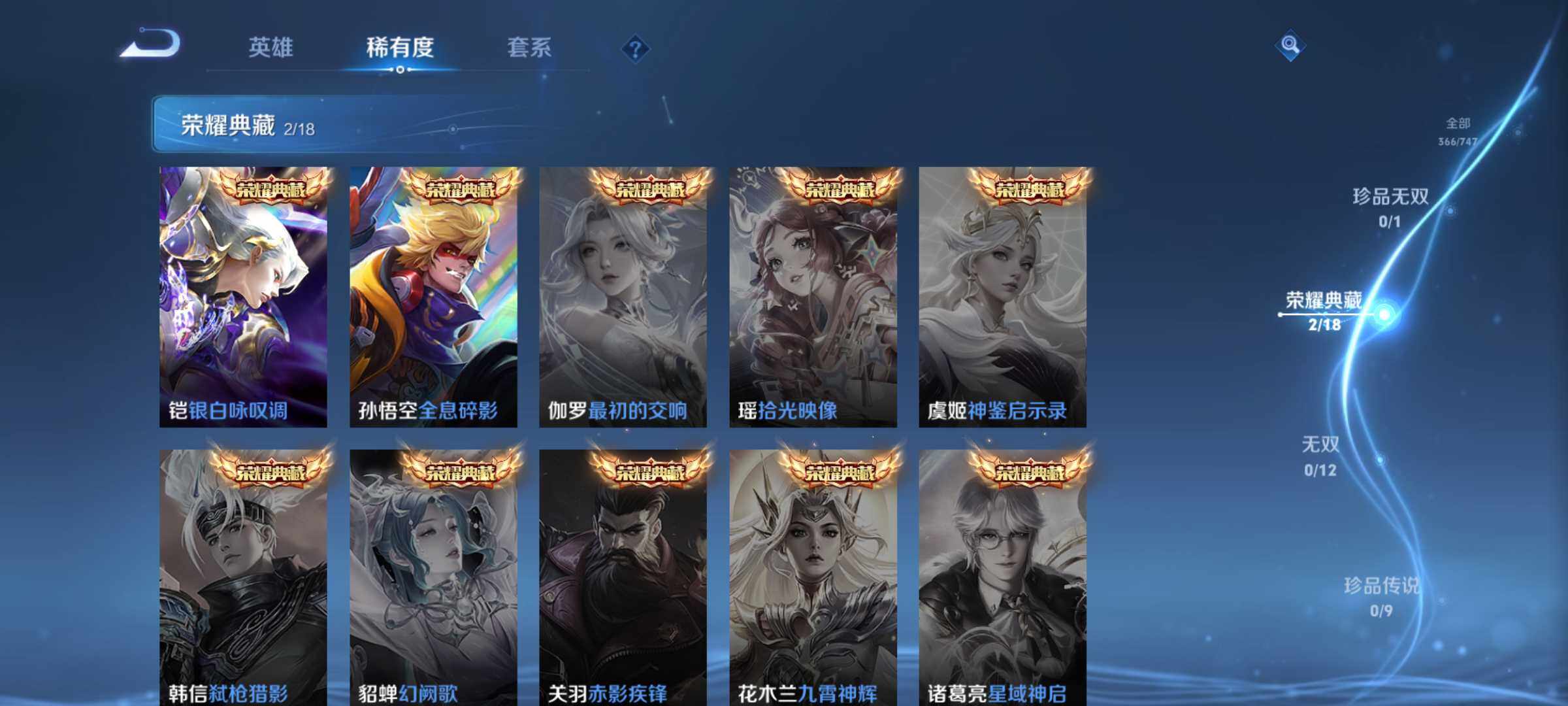 裴擒虎李小龙,吕布御风骁将,马超神威,后羿辉光之辰,韩信飞衡,韩信逐梦之影,铠青龙志,百里玄策白虎志,苏烈玄武志,孙悟空大圣娶亲,孙悟空至尊宝,老夫子圣诞老人,孙悟空孙行者,韩信傲雪梅枪,后羿无尽星芒,马可波罗山海·玄木吟,桑启鸣野蒿