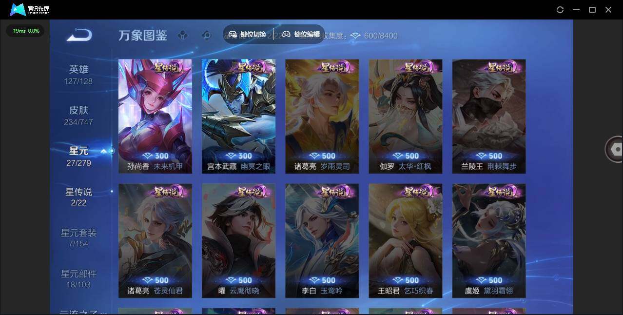 - PX_2095067-实名: 可修改 贵族等级: V7 英雄数: 124 皮肤数: 114 传说皮: 冠军飞将,黄金白羊座,猫影幻舞,超时空战士-狄仁杰,山海·苍雷引,乘龙·淬吴钩 限定皮: 御风骁将,龙胆,烈魂,孙行者,五谷丰年,神器·万象笔,山海·玄木吟