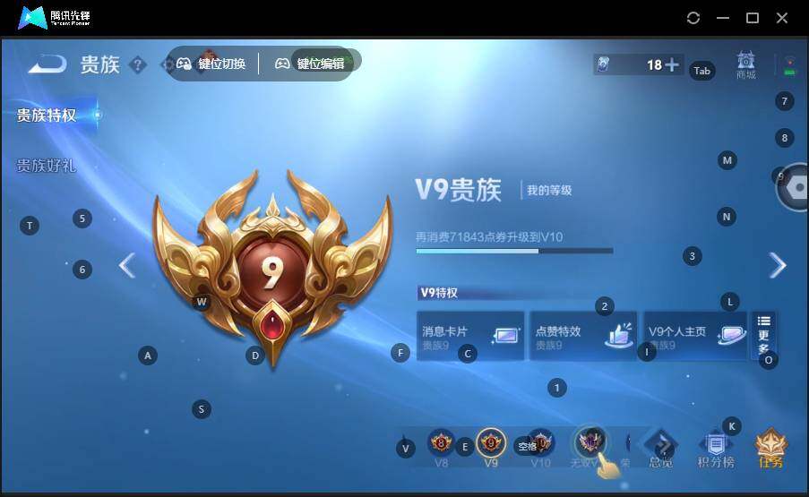 - PX_2084335-贵族等级: V7 英雄数: 95 皮肤数: 86 无双皮: 器灵·螭龙剑 珍品传说: 江户川柯南,怪盗基德 星传说: 幽冥之眼 传说皮: 久胜战神,地狱之眼,胖达荣荣,大乔-时之奇旅,星之鸣奏 限定皮: 鸣野蒿,逐霄战戟,愿照·众生和