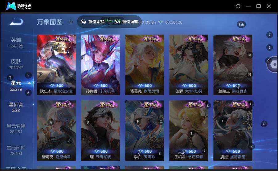 孙膑妖精王,扁鹊炼金王,虞姬凯尔特女王,白起狰,太乙真人饕餮,曹操烛龙,芈月重明,典韦穷奇,狂铁御狮,米莱狄御霄,牛魔御旌,盾山御銮,夏侯惇朔风刀,明世隐疑决卦,老夫子醍醐杖,鬼谷子原初探秘者,狄仁杰万华元夜,程咬金演武夺筹,钟馗驱傩正仪,苏烈千军破阵,吕布猎兽之王,嬴政白昼王子,钟馗神迹守卫,鲁班七号狮舞东方,沈梦溪星空之诺,李元芳银河之约,刘邦夺宝奇兵,马可波罗暗影游猎,蒙犽狂想玩偶喵,元歌云间偶戏,弈星混沌棋,达摩沙漠行僧,兰陵王金庭之子,沈梦溪大漠名商,李元芳云中旅人,张良古海寻踪