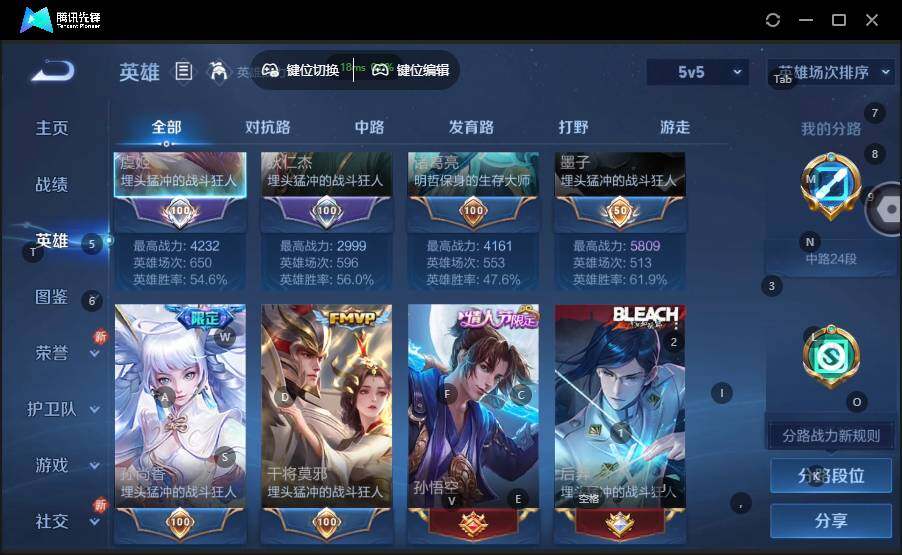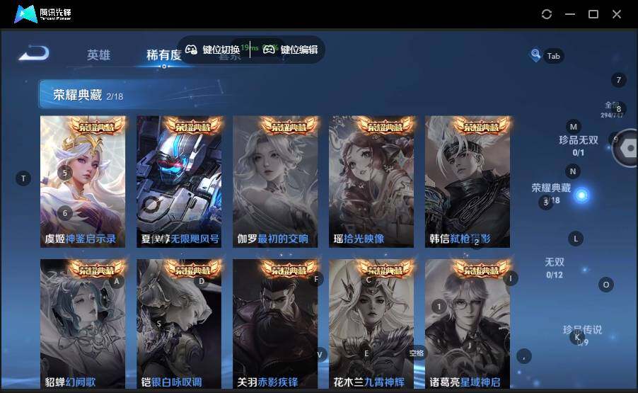 关羽冰锋战神,裴擒虎李小龙,上官婉儿梁祝,吕布御风骁将,诸葛亮时雨天司,后羿辉光之辰,韩信逐梦之影,百里守约朱雀志,项羽霸王别姬,虞姬霸王别姬,花木兰默契交锋,孙悟空至尊宝,干将莫邪冰霜恋舞曲,孙悟空美猴王,猪八戒猪悟能,孙尚香异界灵契,墨子降魔,桑启鸣野蒿