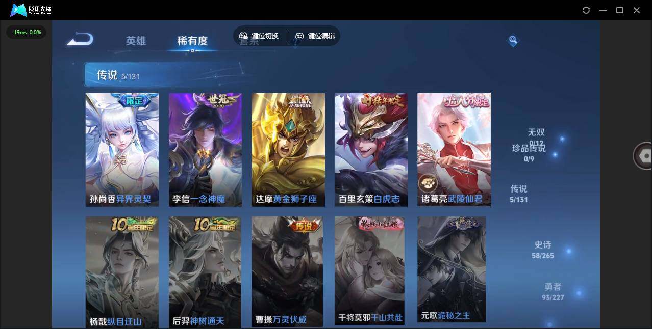 - PX_2081353-贵族等级: V8 英雄数: 124 皮肤数: 280 荣耀水晶: 银白咏叹调 星传说: 金色仲夏夜 传说皮: 久胜战神,炽阳神光,一念神魔,末日机甲-孙尚香,仲夏夜之梦,李逍遥,时之恋人-刘备,挚爱之约,挚爱花嫁,碎云,浮生妄,乘龙·铭钟鼎,典韦战鼓燎原,云中君群星魔术团,幻光神枪,祥瑞亨通 限定皮: 神威,飞衡,青春决赛季,天狼狩猎者,冰霜恋舞曲,神奇女侠,武陵仙君,高山流