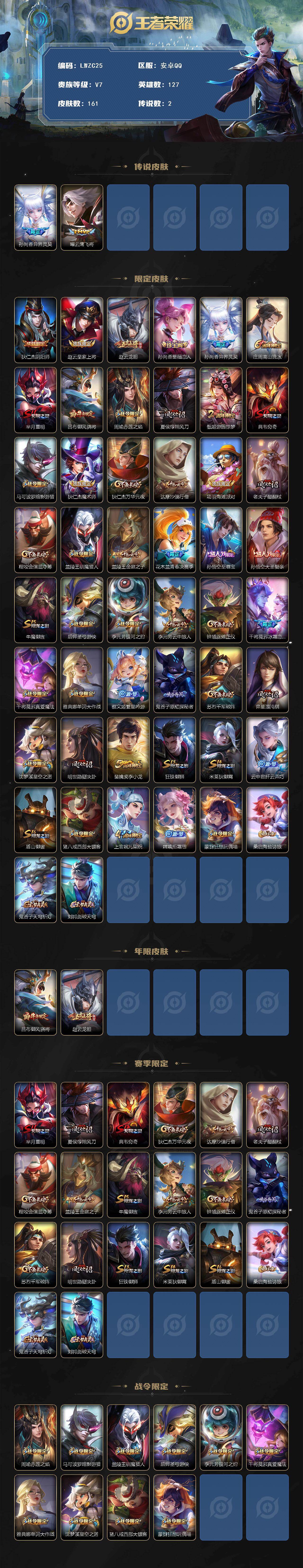 [15080673]【特价出售/店主推荐】 安卓Q-V7-最强王者段位-127英雄-161皮肤-2传说-41史诗