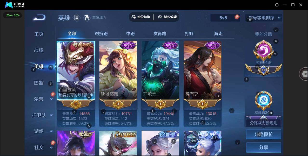 [15080712]【特价出售/店主推荐,打野64段,发育34段,万战,玄策娜可兰陵王,橘右京马克】安卓Q-V10-最强王者段位-127英雄-413皮肤-6典藏皮肤-1典藏英雄-41传说-148史诗