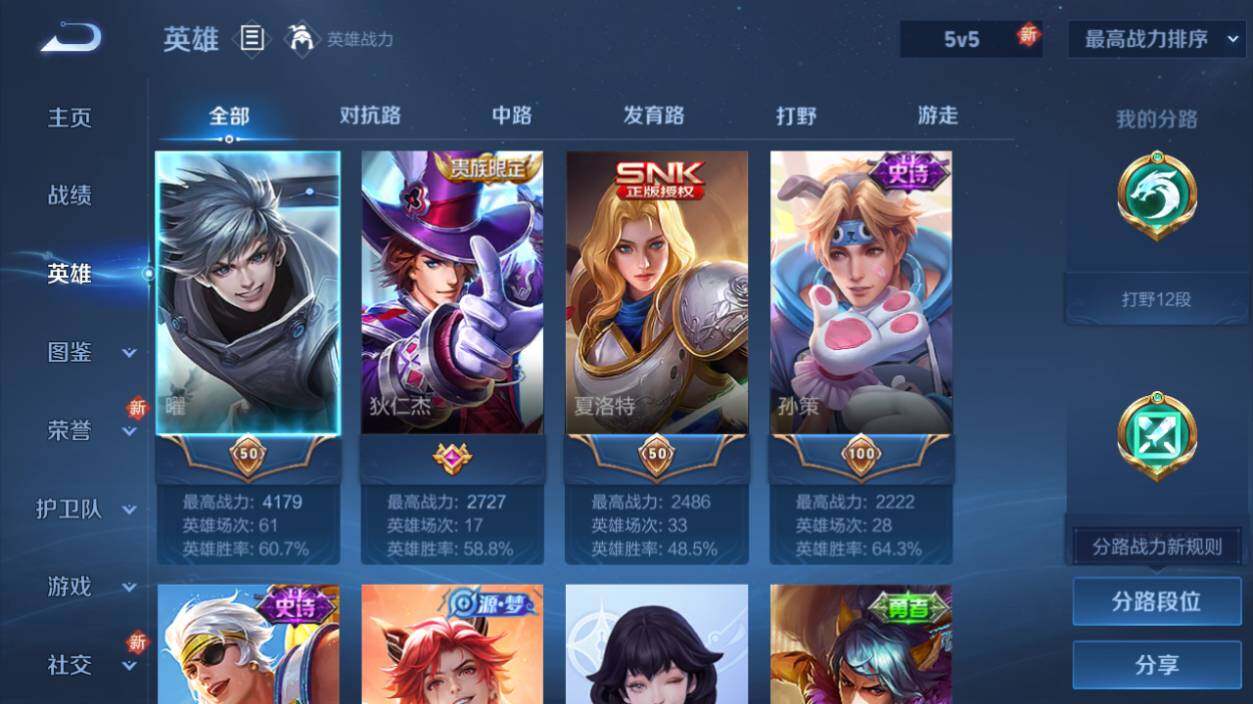 - [12198472]V7 6传说 105英雄 102皮肤 可修改实名 营地被封禁 优质装备:久胜战神,地狱火,仲夏夜之梦(大飞蛾),李逍遥,涂山容容 珍宝阁皮:玩趣恶龙 限定皮:太华(伽罗年限),时雨天司(水龙头),岱宗(典韦年限),李小龙 史诗皮:龙之律动,百相守梦-周瑜,百相守梦-黄忠,黄金分割率,特工魅影,晚萤,节奏热浪,修罗,水果甜心,鬼剑武藏,地狱岩魂,纤云弄巧,繁星吟游(呼啦呼啦),逐浪之夏,曙光守护者,鹰眼统帅,魅力维加斯
