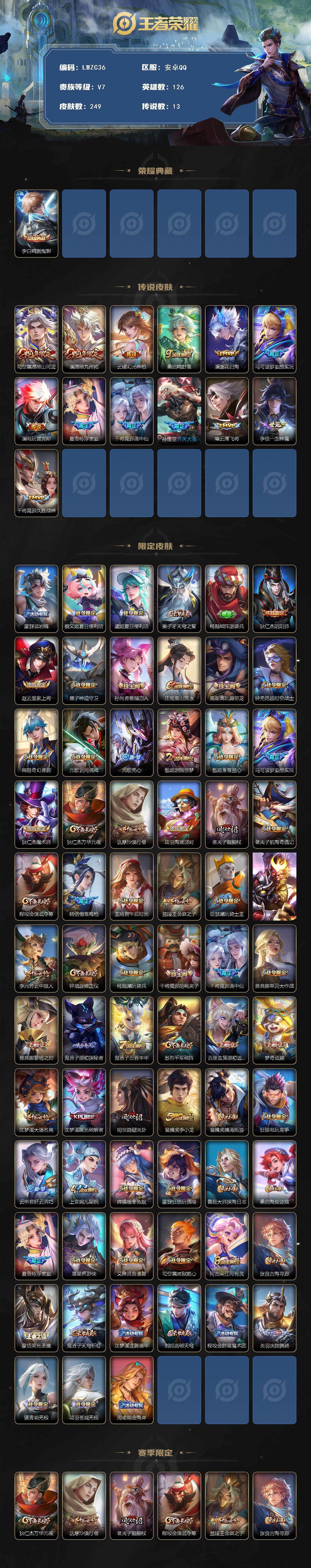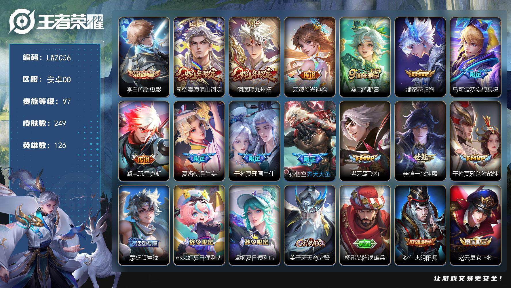 [15080732]【特价出售/店主推荐/4市标/3024星币可兑换星元皮肤】:安卓Q-V7-永恒钻石III段位-126英雄-249皮肤-1典藏皮肤-13传说-67史诗 【英雄全皮】:蒙恬全皮,澜全皮,夏洛特全皮,司空震全皮 【荣耀典藏】:李白鸣剑曳影 【传说皮肤】:司空震愿照山河定,澜愿照九州拓,云缨幻光神枪,桑启鸣野蒿,澜逐花归海,马可波罗妄想实况,澜电玩雷克斯,夏洛特浮生妄,干将莫邪画中仙,孙悟空齐天大圣,曜云鹰飞将,李信一念神魔,干将莫邪久胜战神 【限定皮肤】:蒙犽顽岩魄,蔡文姬夏日便利店,虞姬夏日便利店,姜子牙天穹之誓,杨戬破阵退雄兵,狄仁杰阴阳师,赵云皇家上将,墨子神迹守卫,孙尚香蔷薇恋人,庄周高山流水,高渐离玩趣恶龙,钟无艳超时空战士,扁鹊奇幻香踪,元歌云间偶戏,元歌无心,甄姬游园惊梦,甄姬落雪兰心,马可波罗妄想实况,狄仁杰魔术师,狄仁杰万华元夜,达摩沙漠行僧,项羽海滩派对,老夫子醍醐杖,老夫子航海奇遇记,程咬金演武夺筹,韩信傲雪梅枪,王昭君午后时光,兰陵王金庭之子,亚瑟潮玩骑士王,孙悟空齐天大圣,李元芳云中旅人,钟馗驱傩正仪,杨戬潮玩骑兵,干将莫邪胡桃夹子,干将莫邪画中仙,雅典娜单词大作战,雅典娜黎明之约,鬼谷子原初探秘者,鬼谷子五谷丰年,苏烈千军破阵,百里玄策原初追逐者,梦奇顽趣,沈梦溪大漠名商,沈梦溪匿光破解者,明世隐疑决卦,裴擒虎李小龙,裴擒虎擒涛扼浪,狂铁电玩高手,云中君纤云弄巧,上官婉儿梁祝,嫦娥暖冬兔眠,蒙犽狂想玩偶喵,鲁班大师探海日志,桑启海盐诗旅,夏洛特浮生妄,暃星界游侠,艾琳流音漫舞,司空震地狱燃心,阿古朵江河有灵,张良古海寻踪,蒙恬荣光圣徽,鬼谷子天穹祈灯,沈梦溪龙舞盛年,刘邦剑破天穹,程咬金群星魔术团,关羽决胜骁骑,镜青焰无极,项羽苍威无极,周瑜熔金海岸 【赛季限定】:狄仁杰万华元夜,达摩沙漠行僧,老夫子醍醐杖,程咬金演武夺筹,兰陵王金庭之子,张良古海寻踪,李元芳云中旅人,钟馗驱傩正仪,雅典娜黎明之约,鬼谷子原初探秘者,苏烈千军破阵,百里玄策原初追逐者,梦奇顽趣,沈梦溪大漠名商,明世隐疑决卦,裴擒虎擒涛扼浪,鲁班大师探海日志,桑启海盐诗旅,鬼谷子天穹祈灯,蒙恬荣光圣徽,刘邦剑破天穹,姜子牙天穹之誓 【战令限定】:墨子神迹守卫,蔡文姬夏日便利店,虞姬夏日便利店,钟无艳超时空战士,扁鹊奇幻香踪,元歌云间偶戏,甄姬落雪兰心,老夫子航海奇遇记,王昭君午后