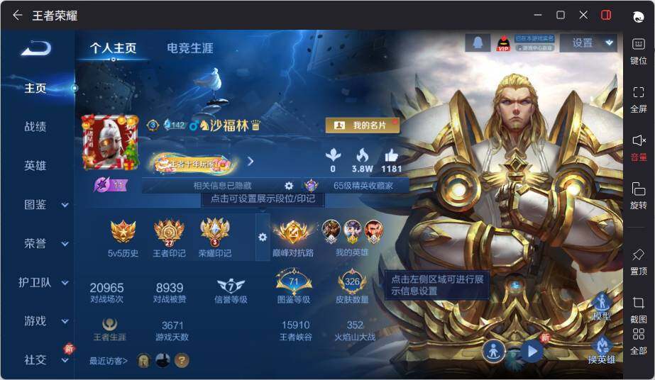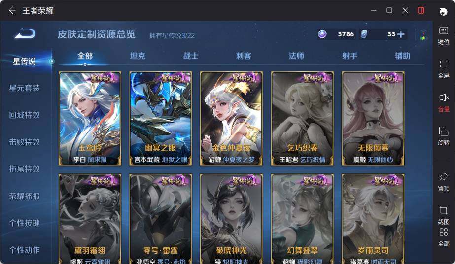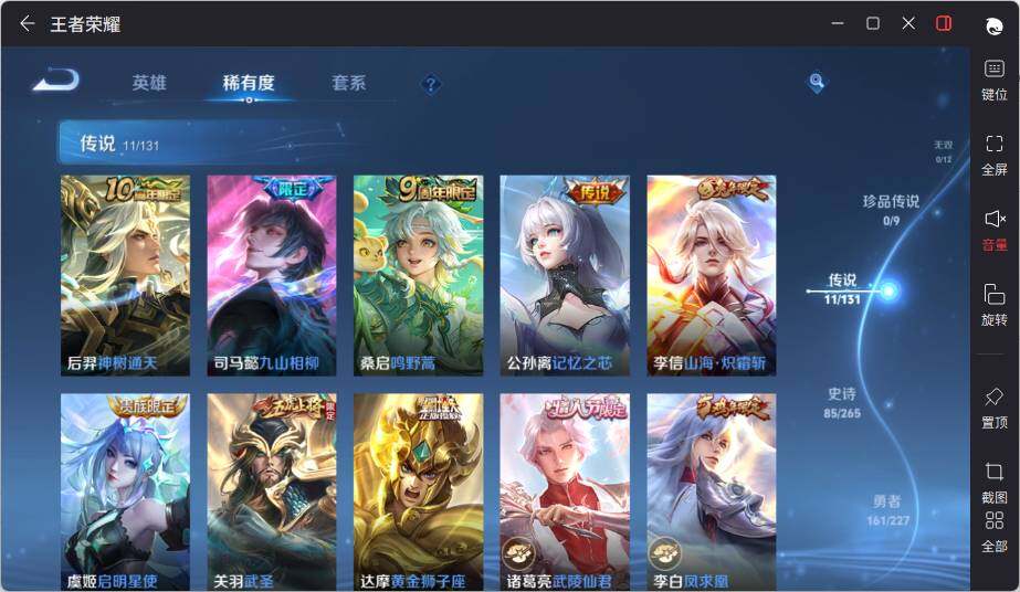 - [10992412]V7 1典藏 1珍品传说 4传说 122英雄 205皮肤 可修改实名 荣耀水晶:拾光映像(瑶典藏) 珍品传说:时之奇旅-孙策 传说皮:典韦战鼓燎原,地狱火,猫影幻舞 珍宝阁皮:妄想食味 限定皮:鸣野蒿,梅西,遇见飞天,梁祝,天狼溯光者,李小龙,大圣娶亲 史诗皮:茶境仙,器灵·浮梦炉,龙之律动,石田雨龙,百相守梦-百里守约,化蝶舞,苍穹之光,黄金分割率,特工魅影,千年之狐,龙骑士(小龙虾),末日机甲-吕布,修罗,女仆咖啡,摇滚巨星,水果甜心,星夜王子,德古拉伯爵,暗隐猎兽者,幽灵船长,鬼剑武藏,心灵战警,乐园奇幻夜,天秀·启明,地狱岩魂,纤云弄巧,缤纷独角兽,月团寄思,水晶猎龙者,曙光守护者,金属风暴,圣诞狂欢,圣诞恋歌,鹰眼统帅,魅力维加斯,未来纪元-赵云