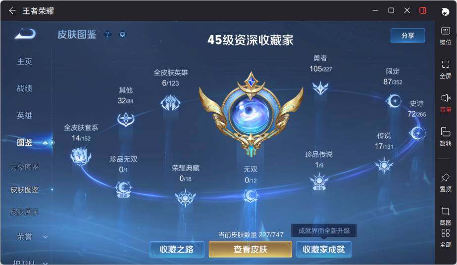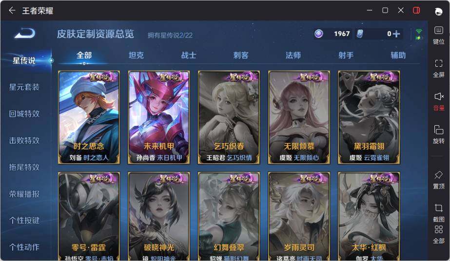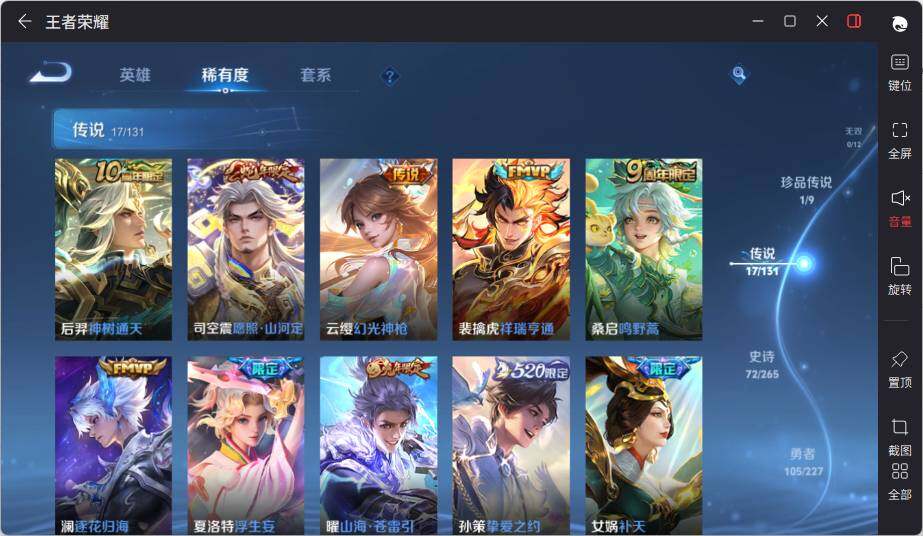 - [11470749]猴子典藏,天鹅之梦,夏侯惇机甲,嫦娥珍传,武则天,妲己蛇年限,久胜,仲夏夜,太华,紫霞,-可二次-124英雄-270皮肤-3典藏-9传说-74史诗 太华-伽罗 奔雷神使-牛魔 冰冠公主-雅典娜 寅虎·展翼-孙膑 天狼绘梦者-上官婉儿 虎魄-张飞 街头霸王-韩信