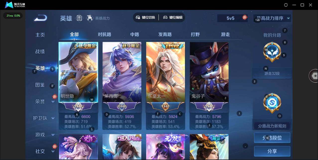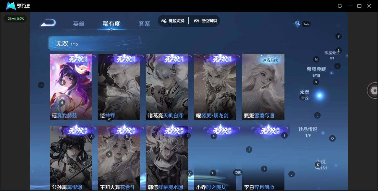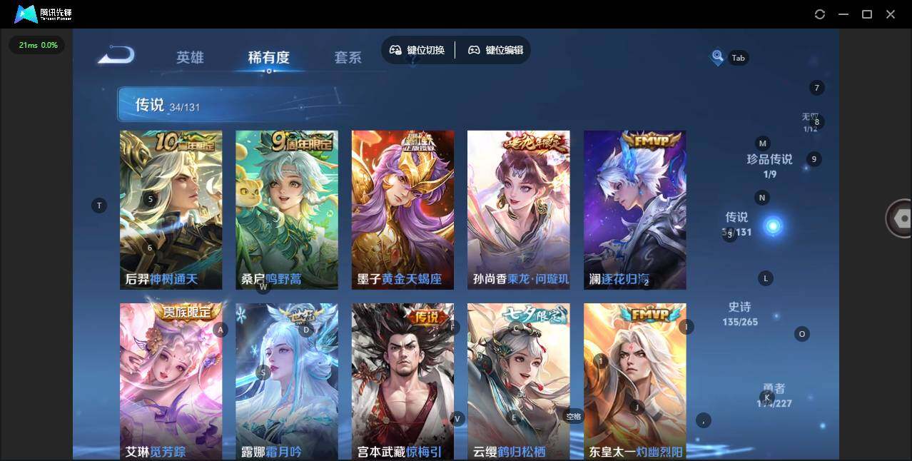 - [11898936]V8 1典藏 9传说 112英雄 150皮肤 可修改实名 优质装备:杀手不太冷,黄金射手座,冠军飞将,炽阳神光,仲夏夜之梦(大飞蛾),超时空战士-狄仁杰 珍宝阁皮:蔷薇恋人 限定皮:凤求凰(白切鸡),白晶晶,时雨天司(水龙头),神威(电光马子),五谷丰年,御风骁将(吕布年限),祈雪灵祝(雪兔子),默契交锋-花木兰,一生所爱,冰霜恋舞曲 史诗皮:紫霞仙子,黄金分割率,特工魅影,千年之狐,魅语,偶像歌手,晚萤,暗夜猫娘,乱世虎臣,修罗,水果甜心,功夫厨神,德古拉伯爵,暗隐猎兽者,鬼剑武藏,舞动绿茵,乘风破浪,逐浪之夏,水晶猎龙者,原初追逐者,鹰眼统帅,黎明之约