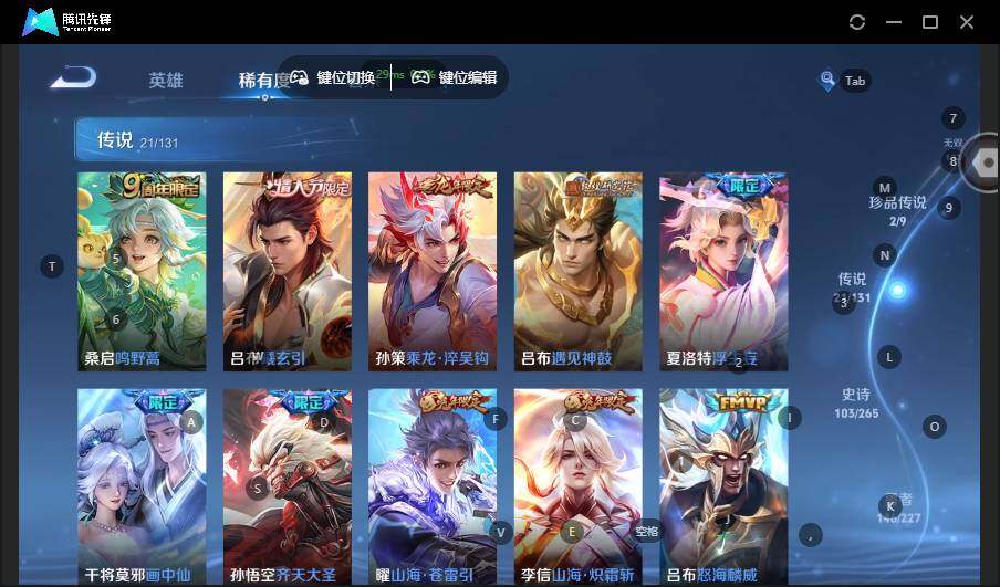 - [11496931]猴子典藏,天鹅之梦,夏侯惇机甲,嫦娥珍传,武则天,妲己蛇年限,久胜,仲夏夜,太华,紫霞,-可二次-124英雄-270皮肤-3典藏-9传说-74史诗 太华-伽罗 奔雷神使-牛魔 冰冠公主-雅典娜 寅虎·展翼-孙膑 天狼绘梦者-上官婉儿 虎魄-张飞 街头霸王-韩信