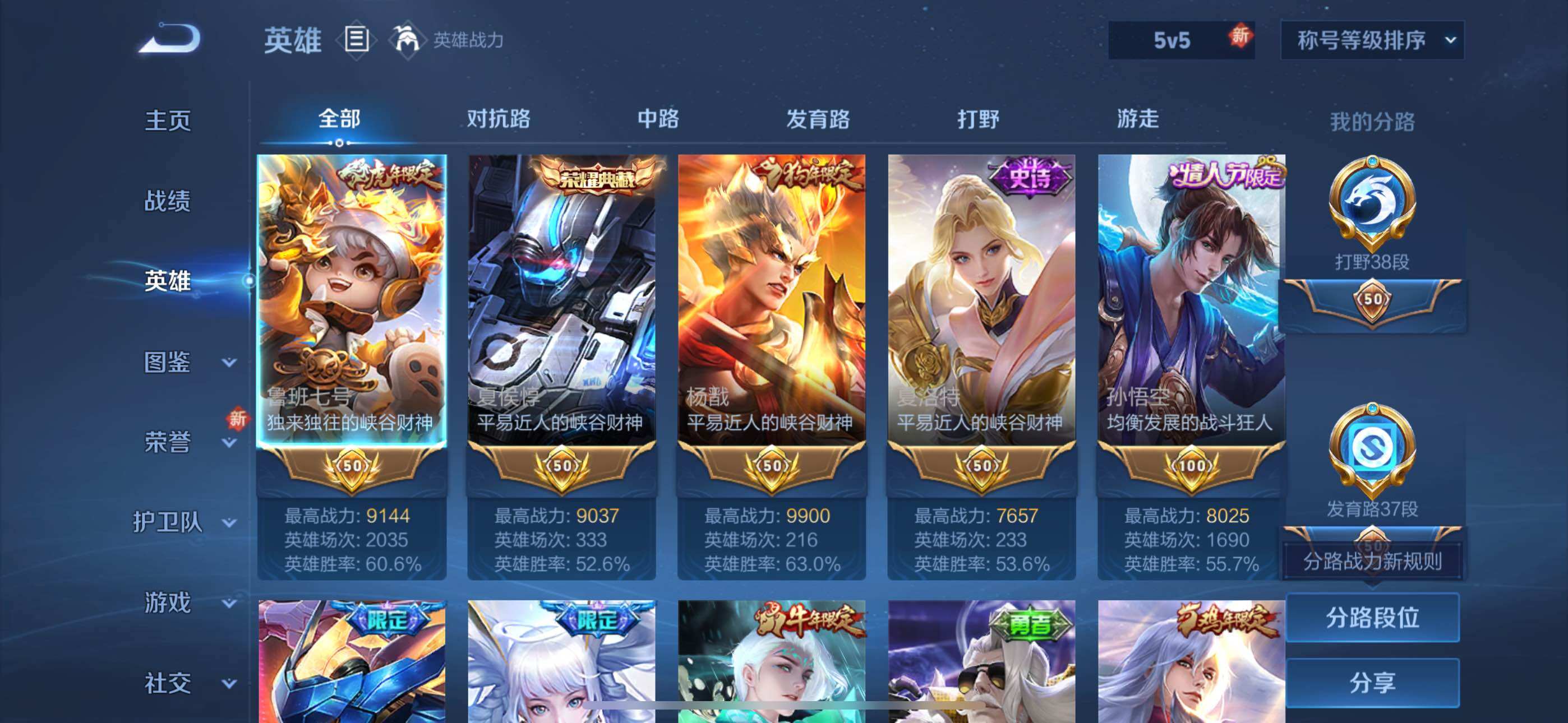 [15080819]【特价出售/店主推荐】打野38段、发育路37段,对抗路36段、中路31段,苹果Q-V9-最强王者段位-127英雄-335皮肤-4典藏皮肤-3星传说-16传说-97史诗