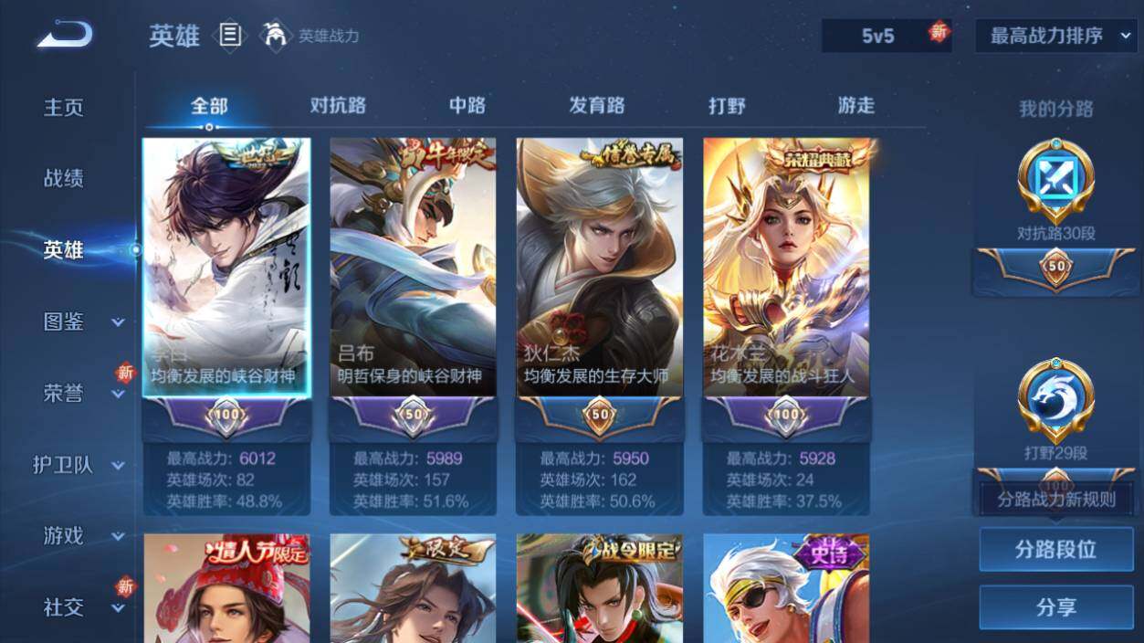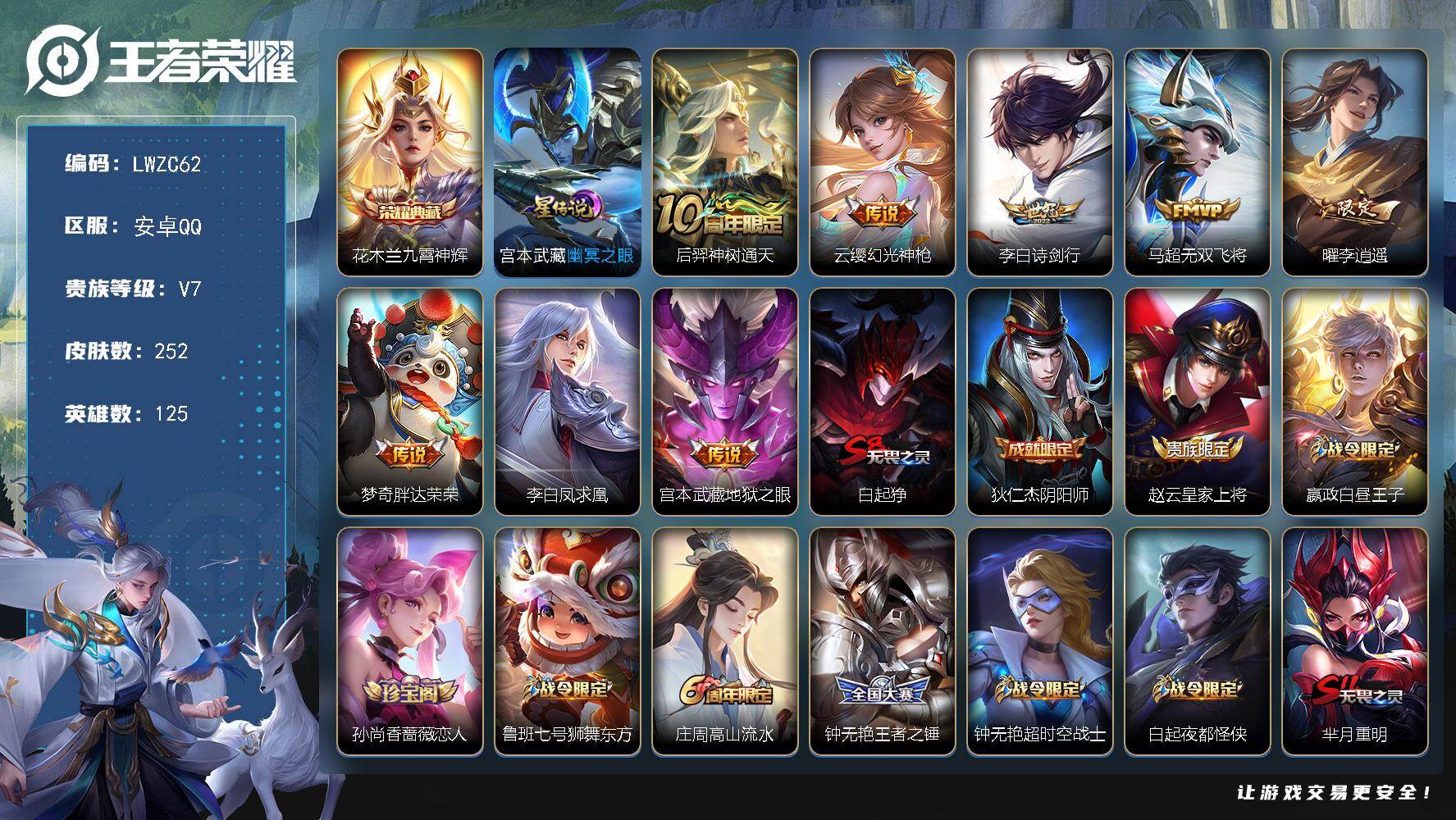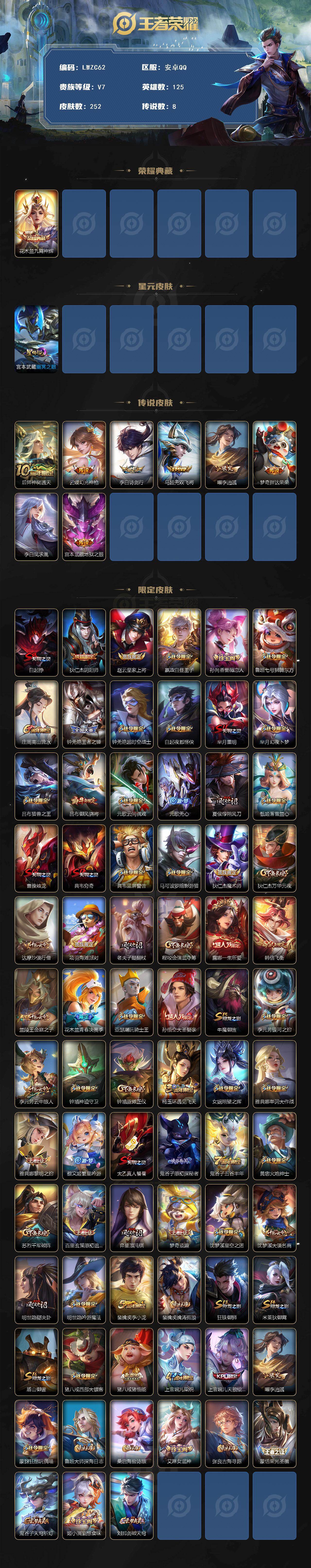 [15080812]【特价出售/店主推荐,,打野29段,,,对抗30段,,5市标】安卓Q-V7-最强王者段位-125英雄-252皮肤-1典藏皮肤-1星传说-8传说-68史诗