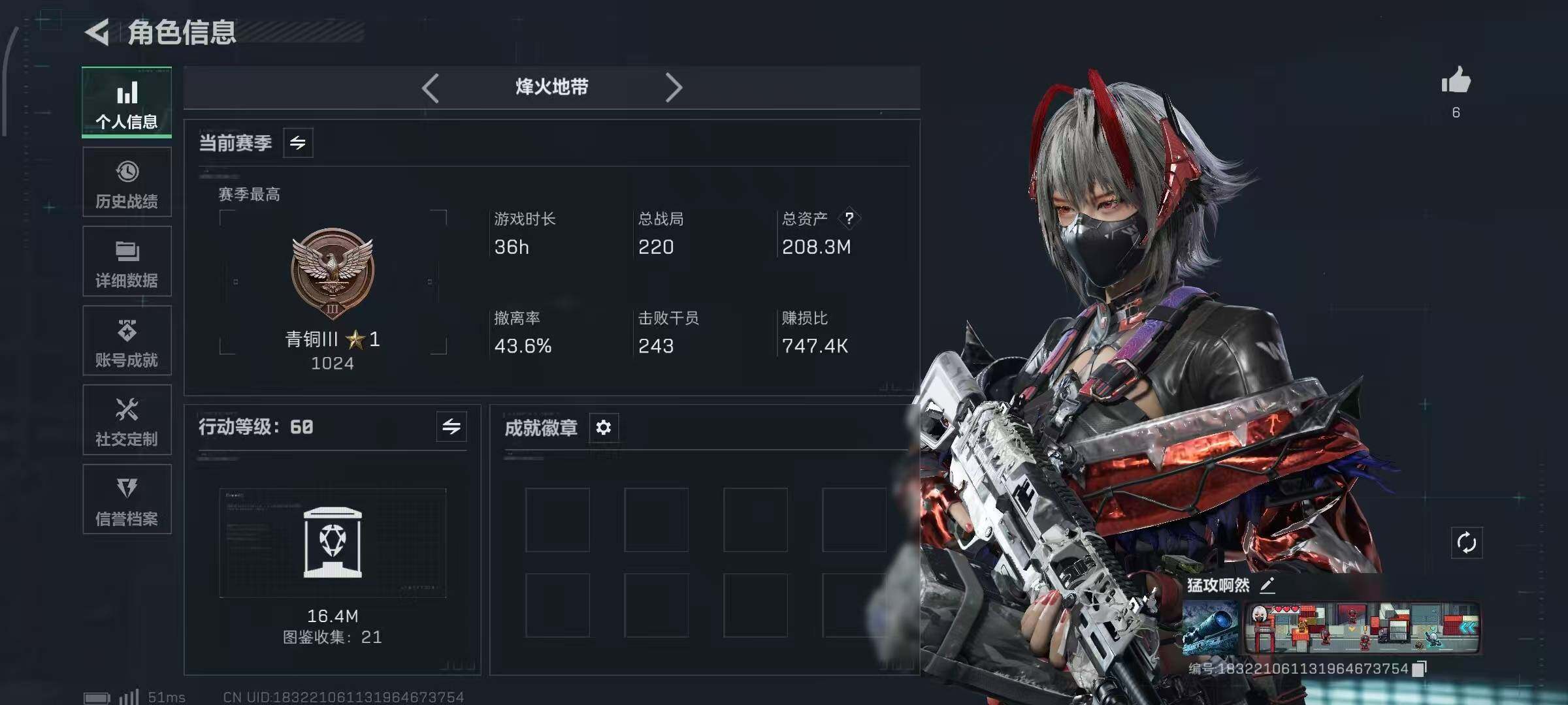 [15081708]208m总资产-70298k哈伏币-60烽火等级-青铜-1战场等级-无军衔
