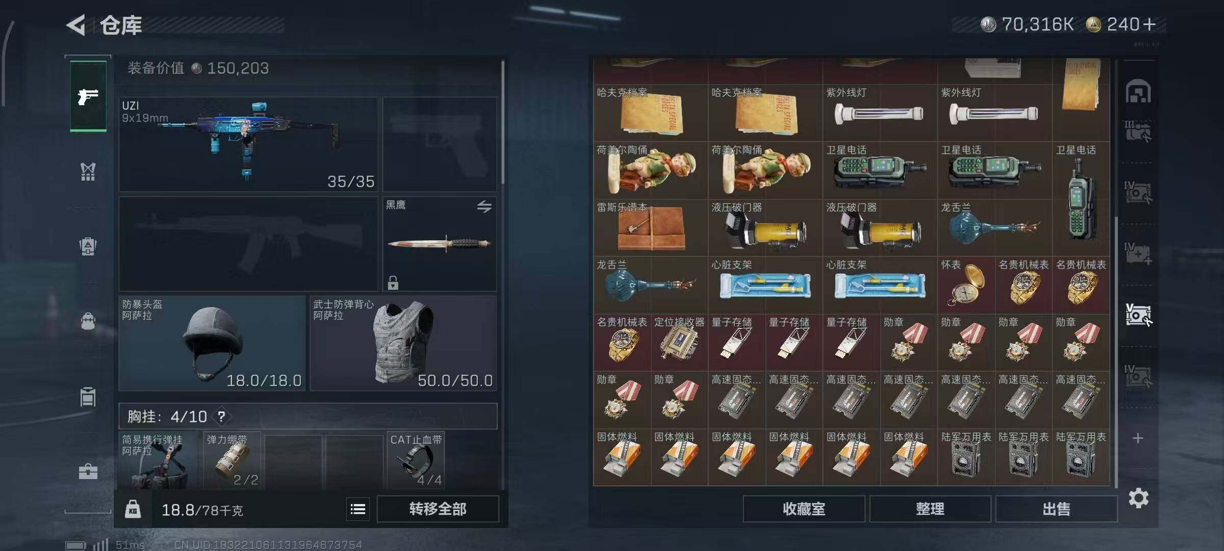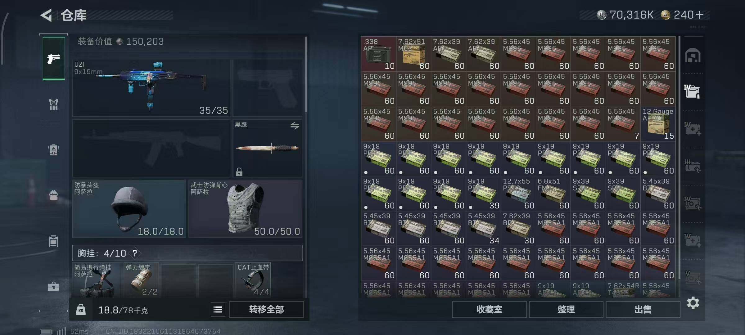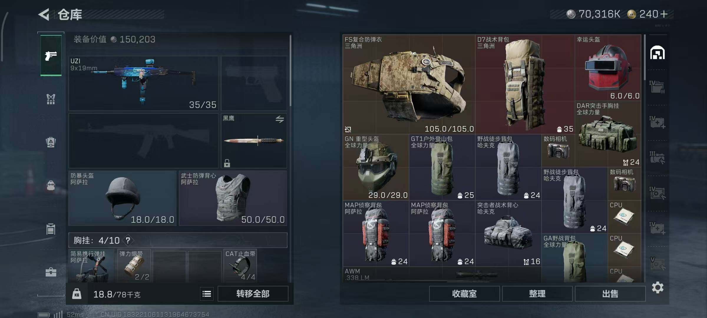 [15081708]208m总资产-70298k哈伏币-60烽火等级-青铜-1战场等级-无军衔 【干员外观】:骇爪-维什戴尔,红狼-电锯惊魂 【近战皮肤】:近战-黑鹰 【传说外观】:M4A1突击步枪-蚀金玫瑰,M4A1突击步枪-阿米娅,ASh-12战斗步枪-鹅鸭杀,SCAR-H战斗步枪-启航,G3战斗步枪-骑士,CAR-15突击步枪-阿米娅,KC17突击步枪-电锯惊魂,QCQ171冲锋枪-鹅鸭杀,QJB201轻机枪-鹅鸭杀,R93狙击步枪-维什戴尔 【史诗外观】:腾龙突击步枪-猎鳄行动,MP5冲锋枪-战术竞备,Vector冲锋枪-阿萨拉文明,SR-3M紧凑突击步枪-战术竞备,勇士冲锋枪-深海恐惧,S12K霰弹枪-曙光 【稀有外观】:M870霰弹枪-地平线,M7战斗步枪-捣蛋鬼,SCAR-H战斗步枪-荣耀列队,腾龙突击步枪-冰天雪地,P90冲锋枪-黄昏,P90冲锋枪-捣蛋鬼,Vector冲锋枪-先锋,UZI冲锋枪-亚特兰蒂斯,SMG-45-行动开启,SMG-45冲锋枪-幻影结构,勇士冲锋枪-冰天雪地,M1014霰弹枪-幻影结构,M249轻机枪-毛鲁斯之力,QJB201轻机枪-哈夫克卫队,Mini-14射手步枪-荣耀列队,SKS射手步枪-弄臣,SR-25射手步枪-开拓,SV-98狙击步枪-星链科技,SV-98狙击步枪-哈夫克航天,SV-98狙击步枪-精英联盟 【普通外观】:AK-12突击步枪-旧工业,QBZ95-1突击步枪-高雅黑,QBZ95-1突击步枪-海浪,QBZ95-1突击步枪-海色,K416突击步枪-几何迷彩,K416突击步枪-高雅黑,M16A4突击步枪-高雅黑,SG552突击步枪-浅蓝涂装,SG552突击步枪-海浪,SCAR-H战斗步枪-数码迷彩,PTR-32突击步枪-黄蜂,MP5冲锋枪-海色,MP5冲锋枪-黄蜂,Vector冲锋枪-几何迷彩,UZI冲锋枪-海色,M1014霰弹枪-高雅黑,M1014霰弹枪-海浪,M249轻机枪-黄蜂,M250通用机枪-条纹,SVD狙击步枪-高雅黑,SR-25射手步枪-黄蜂,SV-98狙击步枪-红色涂装,QSZ92G-条纹,沙漠之鹰-海浪,沙漠之鹰-高雅黑 【载具外观】:轮式突击炮-荣耀 【军牌】:军牌-静谧时光,军牌-享受音乐,军牌-永恒,军牌-信誉优秀 【挂饰】:挂饰-维什戴尔,挂饰-诡影狙击兵*2,挂饰-诡影喷火兵,挂饰-暗行哨兵*4,挂饰