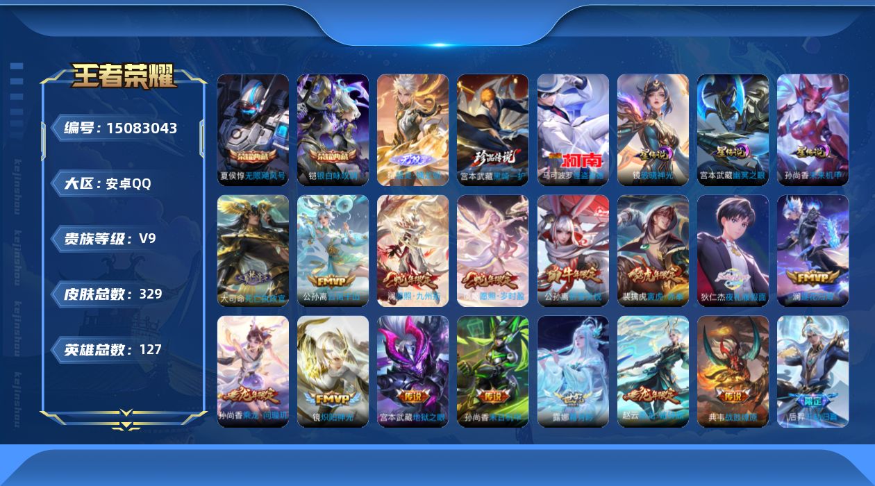 [15083043]【店主推荐捡漏号!可直接换绑】发育路38段,安卓Q-V9-最强王者段位-127英雄-329皮肤-2典藏皮肤-1无双-2珍品传说-4星传说-33传说-112史诗