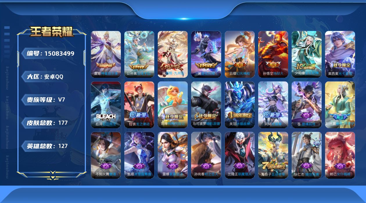 [15083499]【店主推荐捡漏号!可直接换绑/31段发育路】:安卓Q-V7-最强王者段位-127英雄-177皮肤-1典藏皮肤-6传说-51史诗