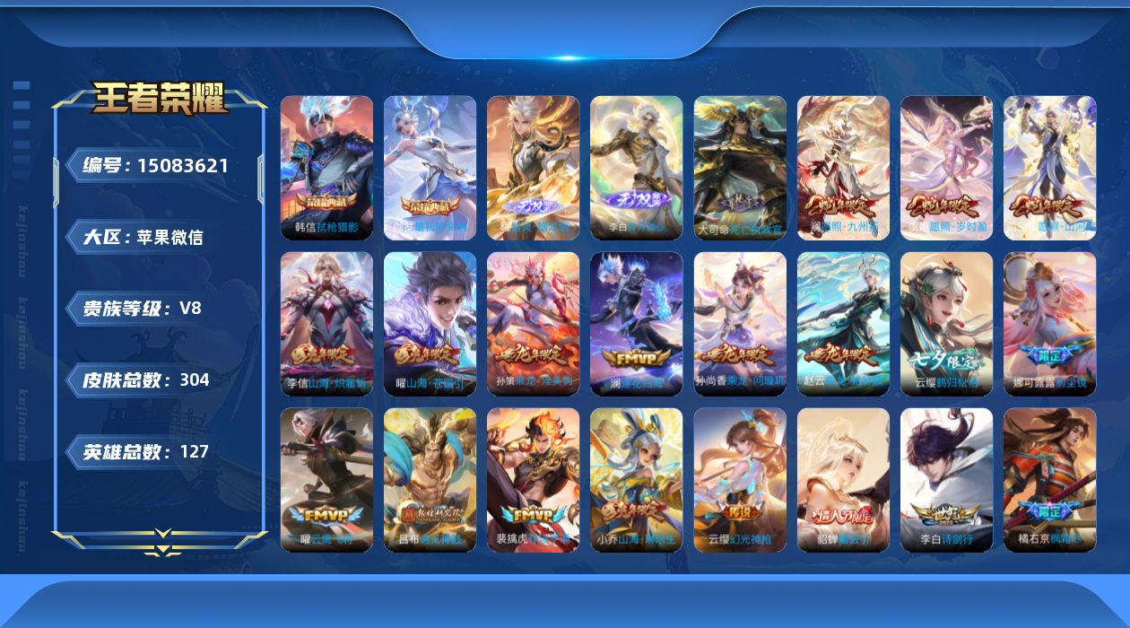 [15083621]打野60段,大司命小国,2星传,苹果WX-V9-最强王者段位-127英雄-303皮肤-2典藏皮肤-2无双-33传说-92史诗