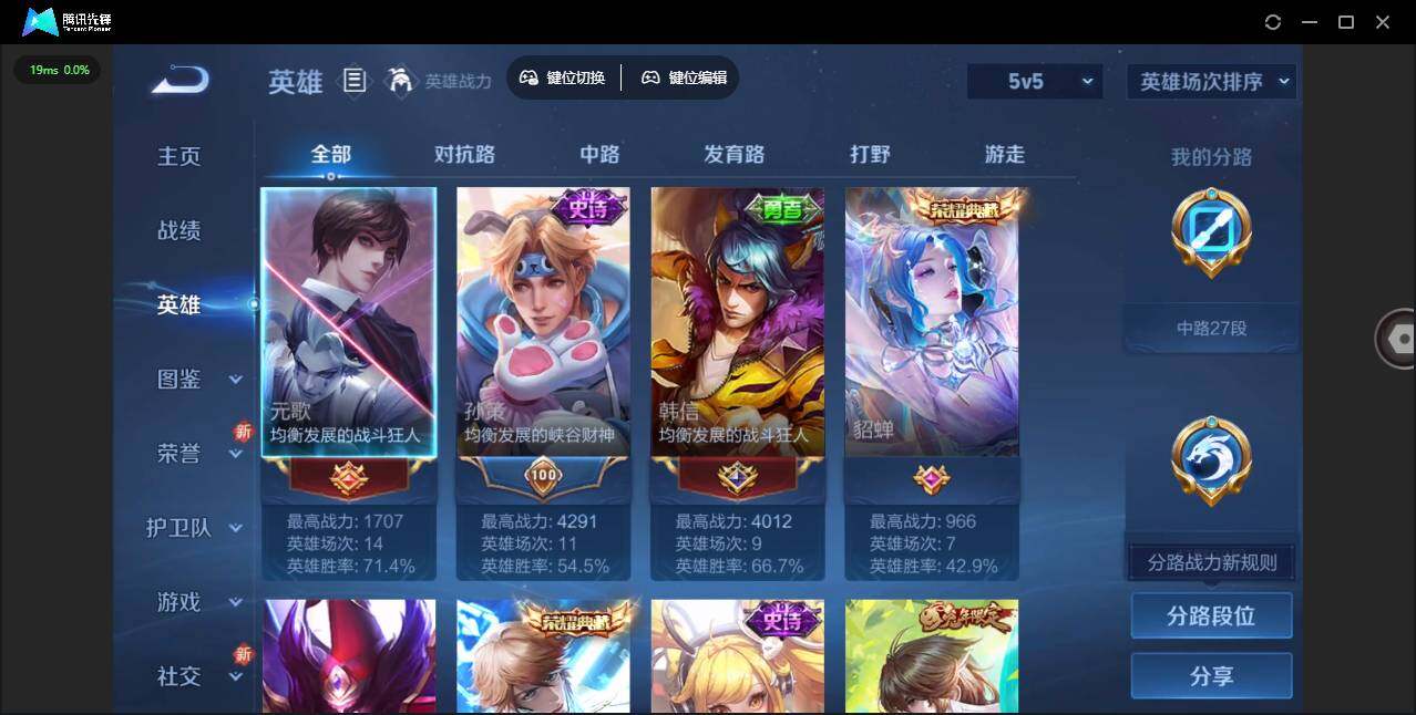 - [11515160]V5 5传说 123英雄 149皮肤 可修改实名 优质装备:黄金射手座,炽阳神光 传说皮:幻光神枪 珍宝阁皮:蔷薇恋人,女武神 限定皮:鸣野蒿,五谷丰年,寅虎·赤拳(老虎年限) 史诗皮:器灵·浮梦炉,百相守梦-黄忠,紫霞仙子,黄金分割率,电玩·爆裂旋风,江河有灵,高渐离燃音魔法,蒙恬荣光圣徽,晚萤,末日机甲-吕布,猫狗日记-孙策,乱世虎臣,节奏热浪,水果甜心,绅士熊喵,暗隐猎兽者,幽灵船长,鬼剑武藏,纤云弄巧,繁星吟游(呼啦呼啦),水晶猎龙者,曙光守护者,金属风暴,鹰眼统帅,魅力维加斯,黎明之约