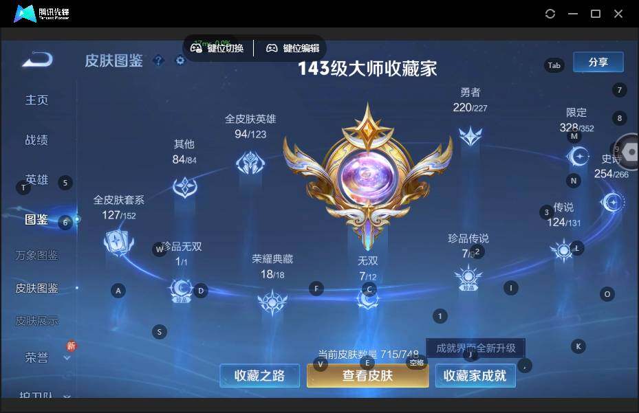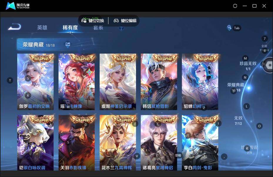 【荣耀典藏】:武则天英雄,孙悟空全息碎影,武则天倪克斯神谕,夏侯惇无限飓风号,小乔天鹅之梦,孙尚香杀手不太冷,鲁班七号星空梦想,芈月大秦宣太后,程咬金活力突击,李白鸣剑曳影,诸葛亮星域神启,花木兰九霄神辉,关羽赤影疾锋,铠银白咏叹调,貂蝉幻阙歌,韩信弑枪猎影,虞姬神鉴启示录,瑶拾光映像,伽罗最初的交响