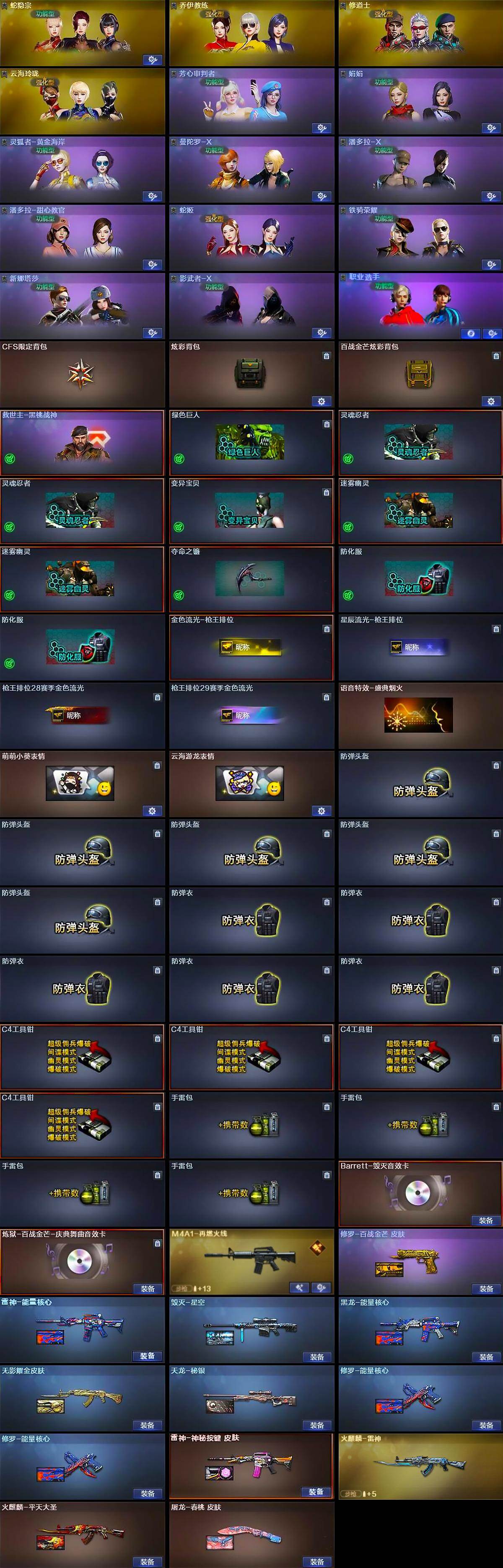 【皮肤】:雷神-能量核心,M4A1-再燃火线,雷神-神秘按键 皮肤,火麒麟-雷神,火麒麟-平天大圣,毁灭-星空,黑龙
