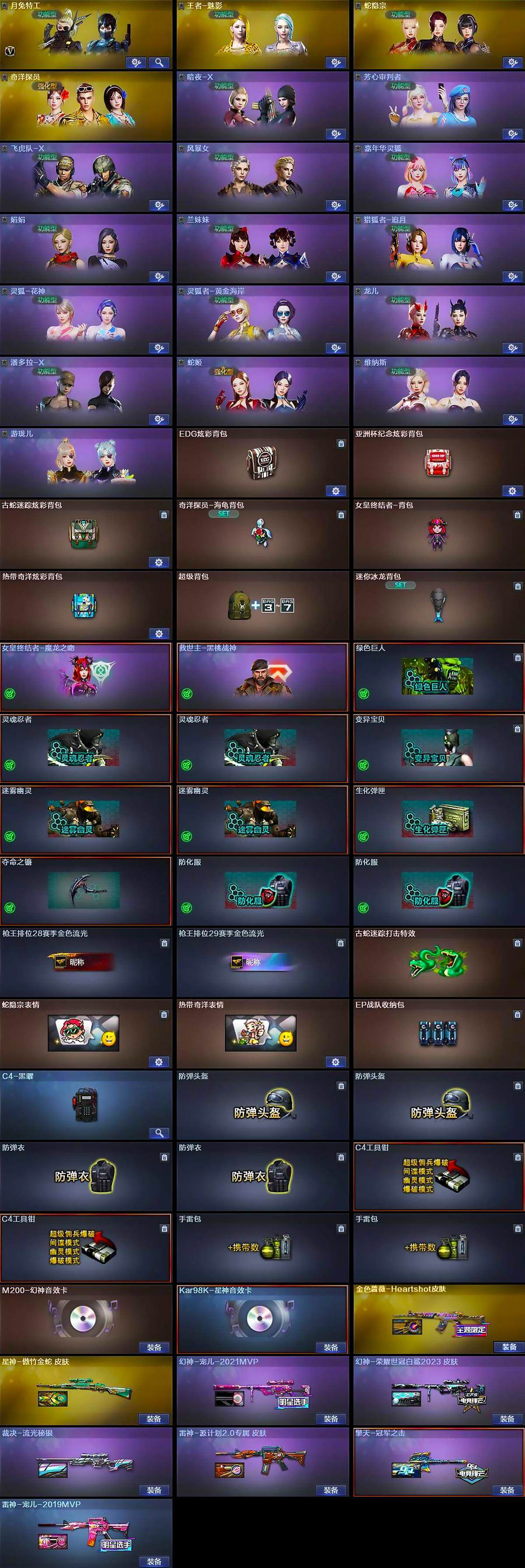 【皮肤】:幻神-宠儿-2021MVP,幻神-荣耀世冠白鲨2023 皮肤,金色蔷薇-Heartshot皮肤,裁决-流光秘银,星神-傲竹金蛇 皮肤,雷