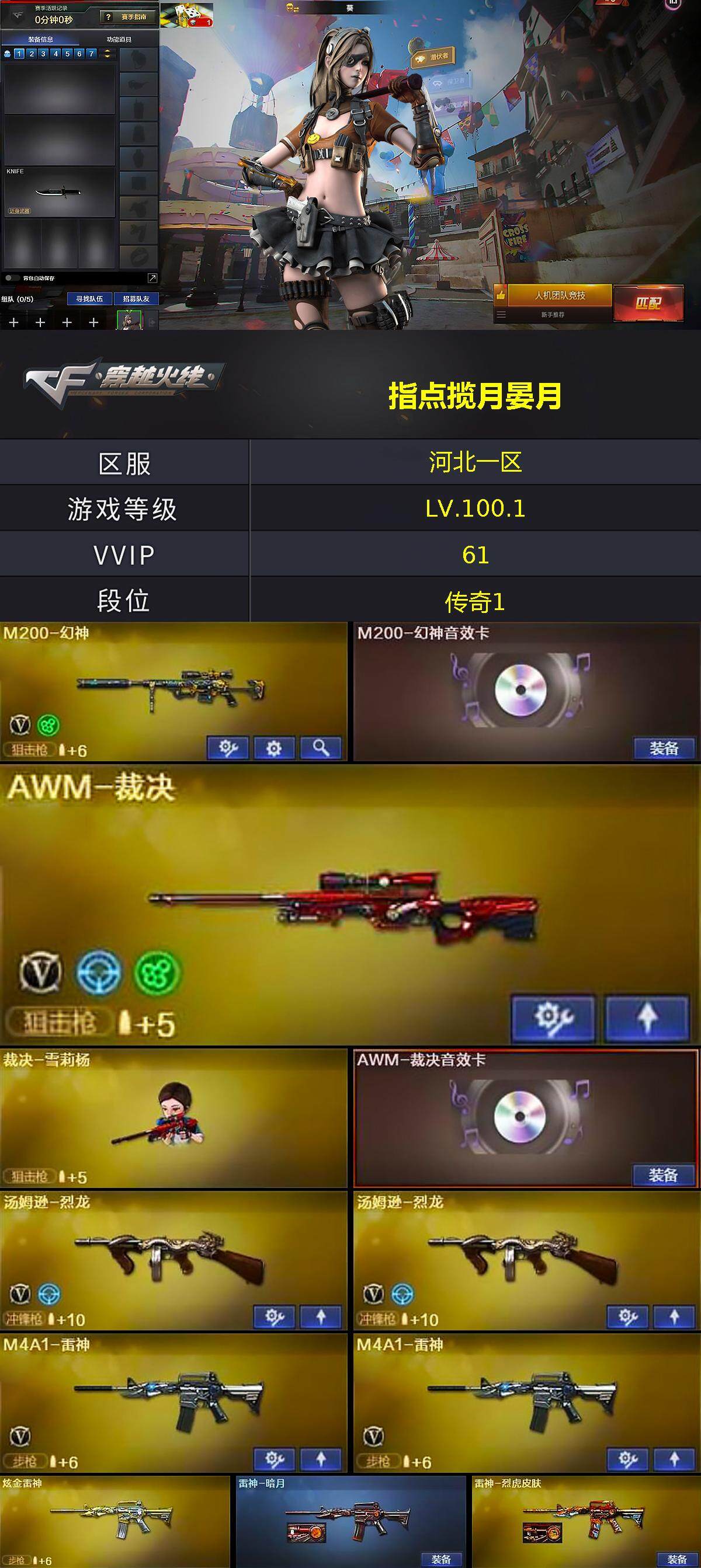 【音效卡】:屠龙-动感闪耀 音效卡,烈火-动感闪耀 音效卡,M200-幻神音效卡,M4A1-黑龙音效卡,M4A1-黑骑士音效卡,Barrett-毁灭音效卡,AWM-裁决音效卡,M4A1-赤狱骑士-怀旧音效卡