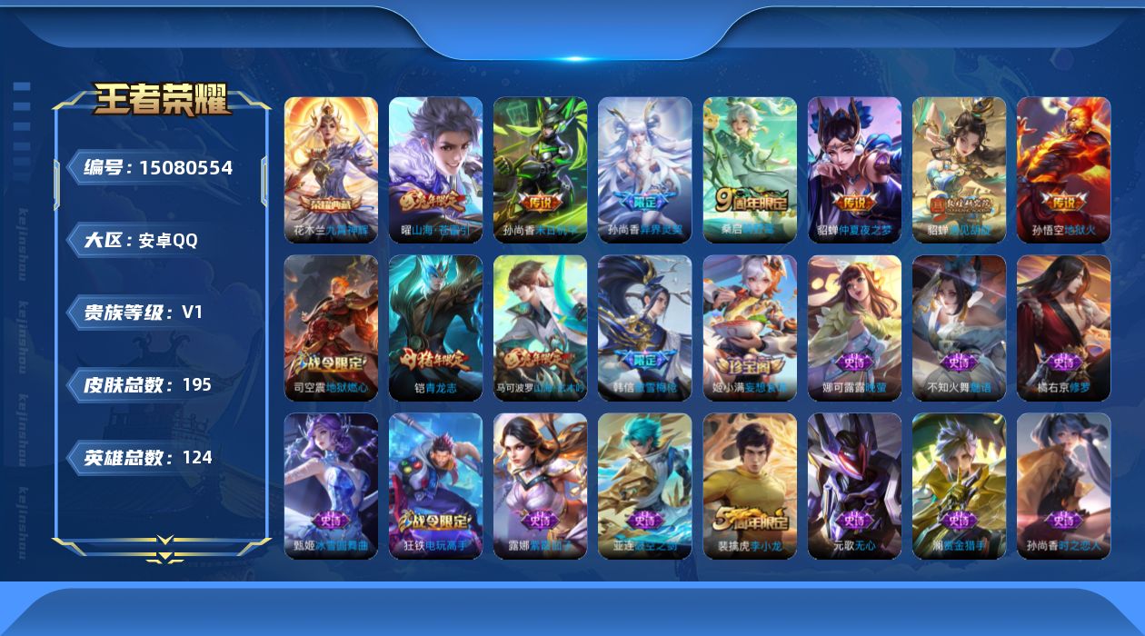 [15080554]【特价急出/详情看图】:安卓Q-V0-尊贵铂金IV段位-122英雄-195皮肤-1典藏-7传说-59史诗 【荣耀典藏】:花木兰九霄神辉 【传说皮肤】:桑启鸣野蒿,曜山海苍雷引,孙尚香异界灵契,貂蝉遇见胡旋,貂蝉仲夏夜之梦,孙尚香末日机甲,孙悟空地狱火 【限定皮肤】:姜子牙天穹之誓,狄仁杰阴阳师,赵云皇家上将,孙尚香蔷薇恋人,孙尚香异界灵契,庄周高山流水,钟无艳超时空战士,扁鹊奇幻香踪,芈月幻夜卜梦,元歌无心,甄姬游园惊梦,甄姬落雪兰心,马可波罗山海玄木吟,狄仁杰魔术师,狄仁杰万华元夜,达摩沙漠行僧,项羽海滩派对,貂蝉遇见胡旋,程咬金演武夺筹,韩信傲雪梅枪,王昭君午后时光,兰陵王金庭之子,李元芳云中旅人,钟馗驱傩正仪,杨戬潮玩骑兵,鬼谷子原初探秘者,鬼谷子五谷丰年,黄忠火炮绅士,铠青龙志,苏烈千军破阵,沈梦溪大漠名商,裴擒虎李小龙,裴擒虎擒涛扼浪,狂铁电玩高手,云中君纤云弄巧,上官婉儿梁祝,上官婉儿神器万象笔,嫦娥拒霜思,嫦娥暖冬兔眠,曜山海苍雷引,鲁班大师探海日志,桑启海盐诗旅,暃星界游侠,艾琳流音漫舞,司空震地狱燃心,阿古朵江河有灵,张良古海寻踪,鬼谷子天穹祈灯,姬小满妄想食味,刘邦剑破天穹,程咬金群星魔术团,周瑜熔金海岸 【年限皮肤】:铠青龙志,马可波罗山海玄木吟,曜山海苍雷引 【赛季限定】:狄仁杰万华元夜,达摩沙漠行僧,程咬金演武夺筹,兰陵王金庭之子,张良古海寻踪,李元芳云中旅人,钟馗驱傩正仪,鬼谷子原初探秘者,苏烈千军破阵,沈梦溪大漠名商,裴擒虎擒涛扼浪,鲁班大师探海日志,桑启海盐诗旅,鬼谷子天穹祈灯,刘邦剑破天穹,姜子牙天穹之誓 【战令限定】:钟无艳超时空战士,扁鹊奇幻香踪,芈月幻夜卜梦,甄姬落雪兰心,王昭君午后时光,艾琳流音漫舞,杨戬潮玩骑兵,黄忠火炮绅士,狂铁电玩高手,嫦娥暖冬兔眠,司空震地狱燃心,暃星界游侠 【史诗皮肤】:露娜紫霞仙子,赵云皇家上将,赵云未来纪元,甄姬冰雪圆舞曲,王昭君偶像歌手,狄仁杰魔术师,宫本武藏鬼剑武藏,孙尚香蔷薇恋人,孙尚香水果甜心,妲己魅力维加斯,墨子金属风暴,吕布末日机甲,张飞乱世虎臣,花木兰水晶猎龙者,刘邦德古拉伯爵,夏侯惇乘风破浪,兰陵王暗隐猎兽者,诸葛亮黄金分割率,甄姬游园惊梦,安琪拉心灵骇客,百里守约特工魅影,蔡文姬舞动绿茵,刘禅天才门将,李元芳逐浪之夏,程咬金功夫厨神,白起星夜王子,阿轲节奏热浪,孙策猫狗日记,