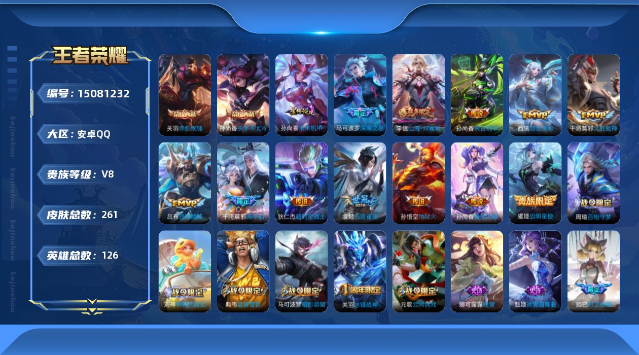 [15081232]可二次【店主推荐捡漏号!可直接换绑】,安卓Q-V8-永恒钻石I段位-125英雄-261皮肤-2典藏皮肤-12传说-68史诗