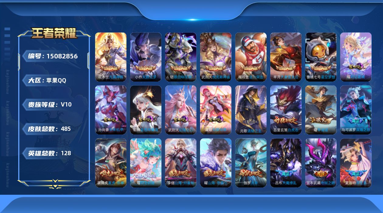 [15082856]【店主推荐捡漏号!可直接换绑 小国程咬金】苹果Q-V10-最强王者段位-128英雄-485皮肤-7典藏皮肤-1典藏英雄-62传说-161史诗 【英雄全皮】:元歌全皮,刘邦全皮,孙权全皮,娜可露露全皮,橘右京全皮,雅典娜全皮,鬼谷子全皮,狂铁全皮,盾山全皮,猪八戒全皮,鲁班大师全皮,蒙恬全皮,夏洛特全皮,金蝉全皮,空空儿全皮 【荣耀典藏】:武则天英雄,武则天倪克斯神谕,小乔天鹅之梦,鲁班七号星空梦想,芈月大秦宣太后,程咬金活力突击,花木兰九霄神辉,铠银白咏叹调 【传说皮肤】:后羿神树通天,元歌诡秘之主,桑启鸣野蒿,艾琳觅芳踪,马可波罗妄想实况,张飞百相守梦,夏洛特浮生妄,干将莫邪画中仙,虞姬无限倾心,项羽无限倾心,孙悟空齐天大圣,小乔山海琳琅生,曜山海苍雷引,李信山海炽霜斩,狄仁杰神器狴犴令,不知火舞绯月行,王昭君星穹之声,橘右京枫霜尽,娜可露露前尘镜,孙尚香音你闪耀,马可波罗深海之息,后羿无尽星芒,马超无双飞将,大乔挚爱花嫁,孙策挚爱之约,露娜启示之音,蔡文姬花朝如约,女娲补天,孙策末日机甲,瑶时之祈愿,裴擒虎寅虎赤拳,鲁班七号寅虎瑞焰,孙尚香异界灵契,貂蝉遇见胡旋,赵云淬星耀世,王昭君乞巧织情,西施游龙清影,曜李逍遥 ,周瑜音你心动,小乔音你心动,诸葛亮时雨天司,铠绛天战甲,虞姬启明星使,孙悟空零号赤焰,关羽武圣,曜云鹰飞将,伽罗太华,貂蝉猫影幻舞,张良黄金白羊座,干将莫邪久胜战神,达摩黄金狮子座,百里玄策白虎志,花木兰冠军飞将,梦奇胖达荣荣,后羿黄金射手座,诸葛亮武陵仙君,貂蝉仲夏夜之梦,孙尚香末日机甲,宫本武藏地狱之眼,孙悟空地狱火,吕布天魔缭乱,武则天海洋之心 【限定皮肤】:白起狰,姜子牙天穹之誓,狄仁杰阴阳师,小乔纯白花嫁,虞姬凯尔特女王,廉颇寅虎御盾,小乔山海琳琅生,赵云皇家上将,赵云百木心枪,墨子神迹守卫,墨子降魔,妲己热情桑巴,妲己时之彼端,妲己时之奇旅,嬴政优雅恋人,嬴政白昼王子,孙尚香异界灵契,鲁班七号狮舞东方,鲁班七号乒乒小将,鲁班七号寅虎瑞焰,庄周玄嵩,庄周高山流水,高渐离死亡摇滚,阿轲迷踪丽影,钟无艳超时空战士,孙膑寅虎展翼,扁鹊奇幻香踪,白起夜都怪侠,芈月重明,芈月幻夜卜梦,吕布天魔缭乱,吕布猎兽之王,周瑜真爱至上,周瑜赤莲之焰,元歌云间偶戏,元歌无心,夏侯惇朔风刀,夏侯惇匿光决锋者,甄姬幽恒,甄姬女儿国国王,甄姬游园惊梦,甄姬落雪兰心