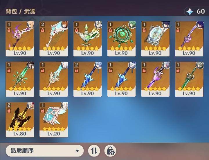 [15117687]59级/49黄/男主/24个五星角色/14个五星武器