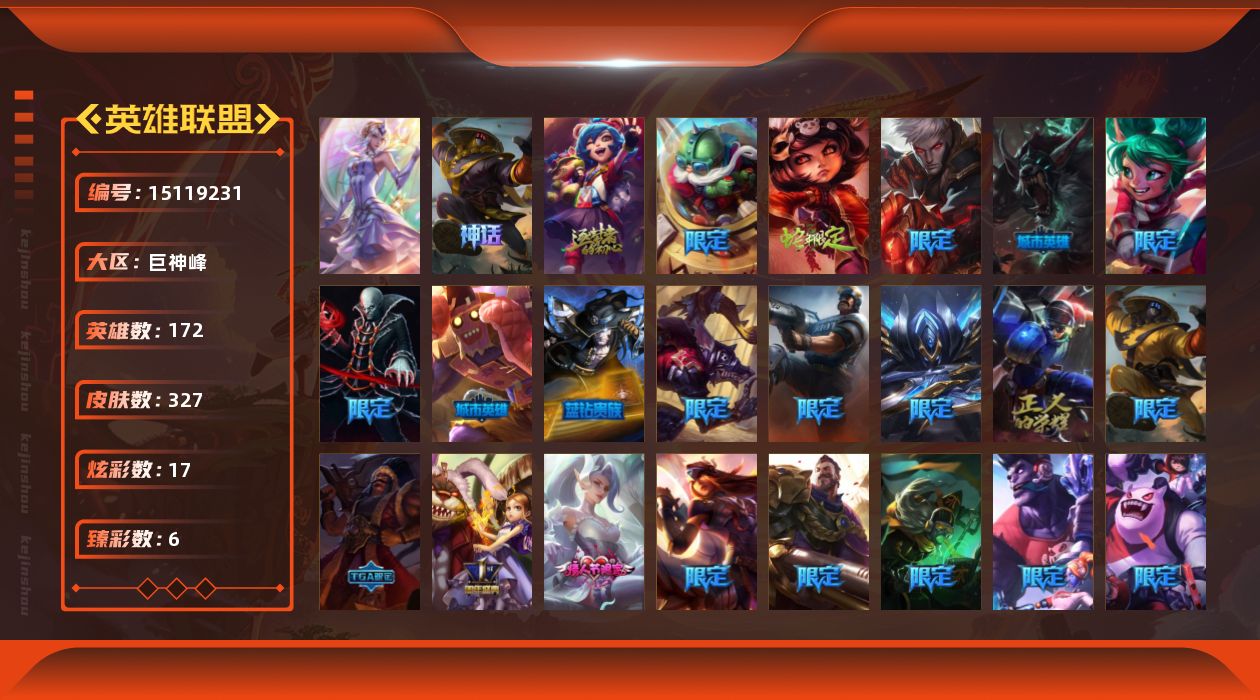 [15119231]【店主推荐捡漏号!可直接换绑】黑铁段位-172英雄-327皮肤-17炫彩-1终极-2神话-44限定-16传说-72史诗
