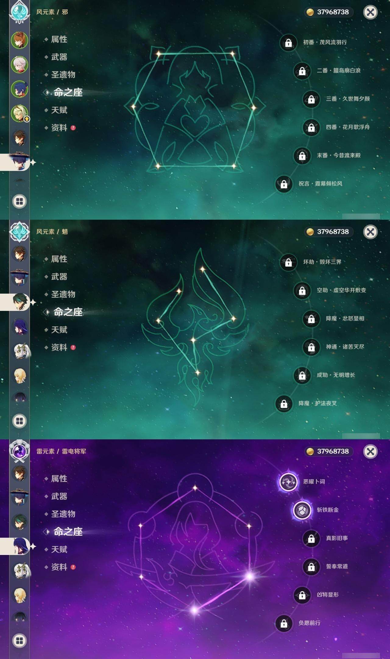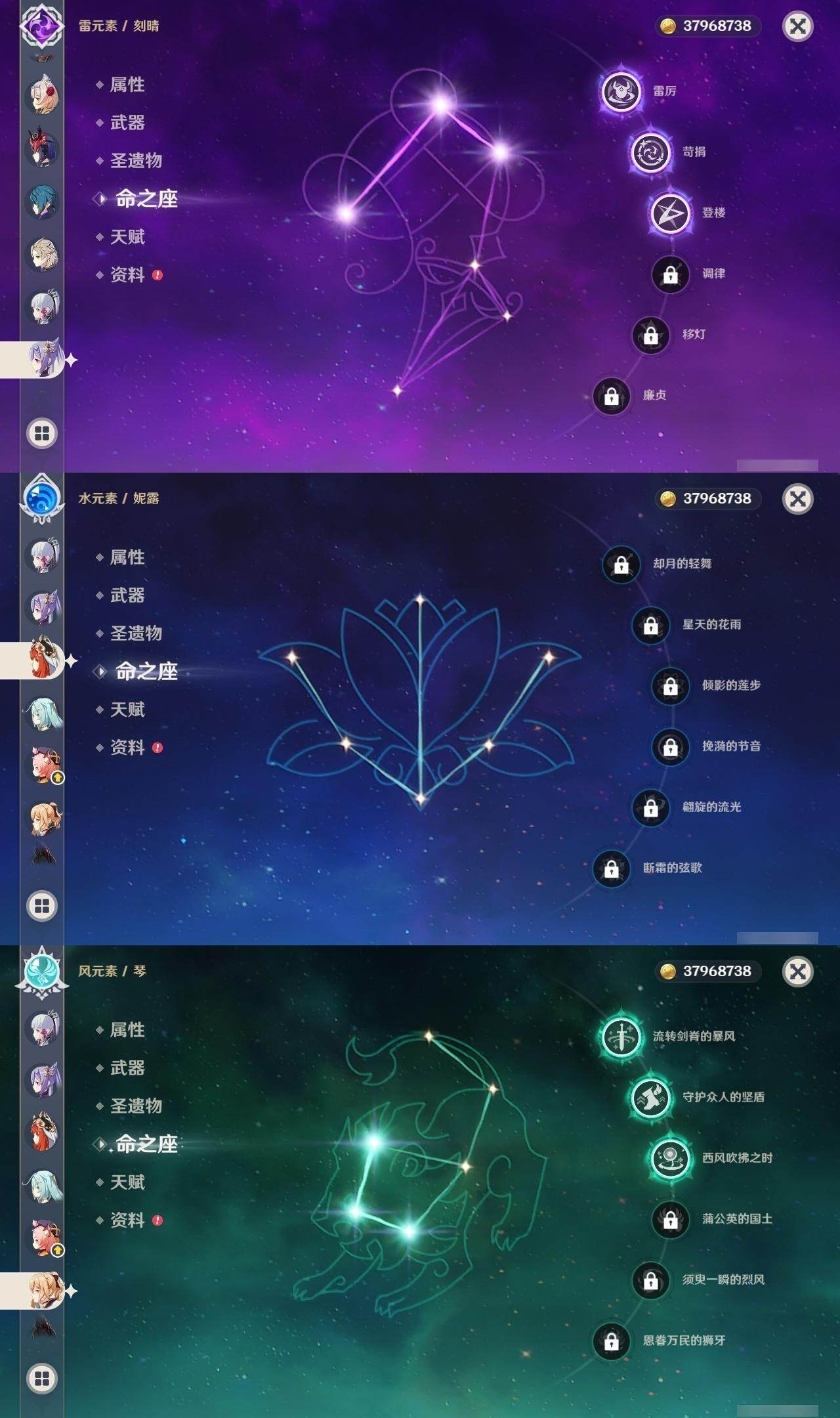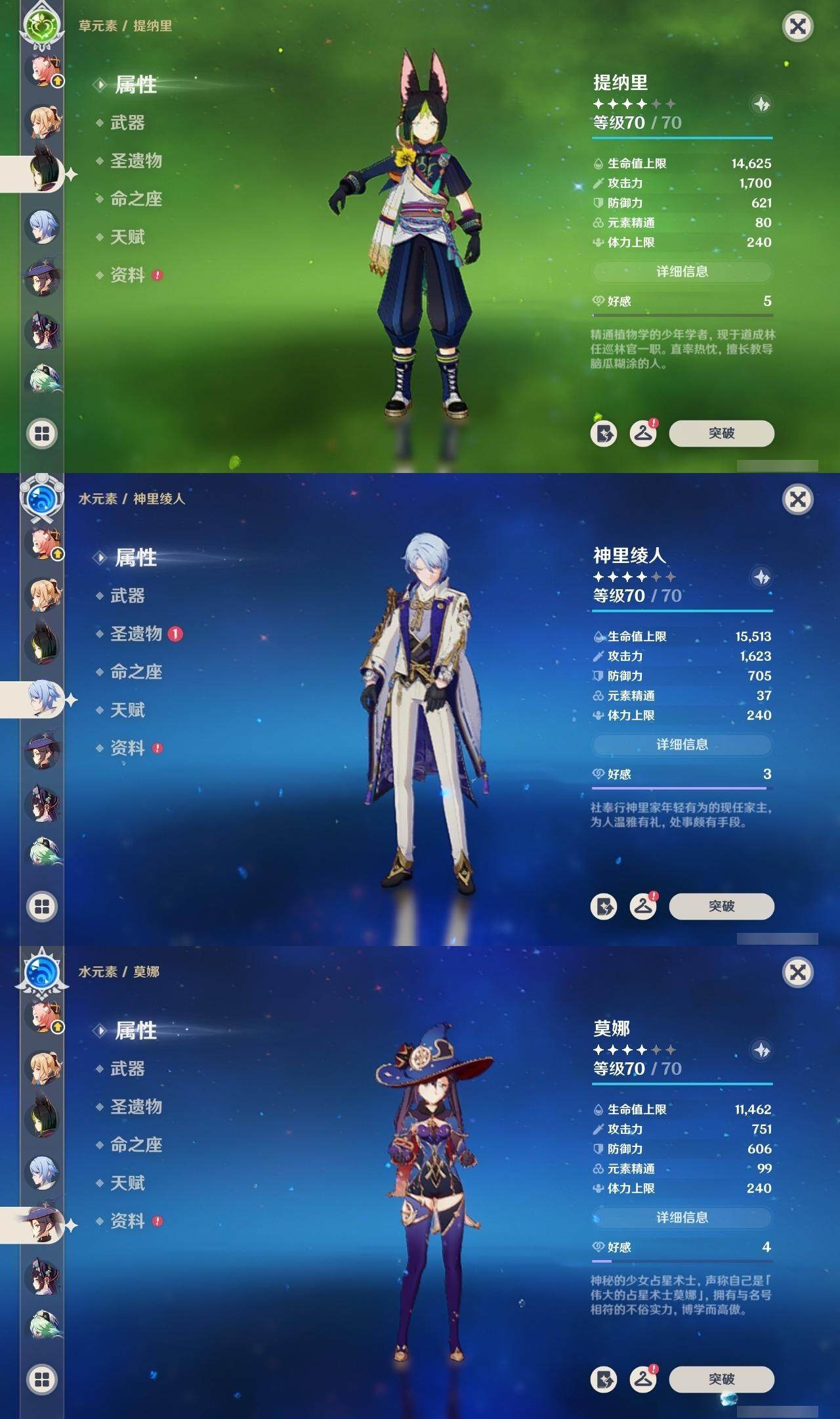 0命娜维娅,0命那维莱特,0命迪希雅,0命流浪者,0命纳西妲,0命妮露,0命赛诺,0命提纳里,0命夜兰,0命神里绫人,2命雷电将军,0命枫原万叶,0命神里绫华,0命钟离,0命魈,0命宵宫,0命可莉,0命达达利亚,0命阿贝多,0命珊瑚宫心海,3命刻晴,1命七七,3命琴,0命莫娜,3命迪卢克,0命恰斯卡,0命梦见月瑞希,精1裁断,精1千夜浮梦,精1赤沙之杖,精1圣显之钥,精1神乐之真意,精1息灾,精1冬极白星,精1薙草之稻光,精1雾切之回光,精1无工之剑,精1护摩之杖,精1四风原典,精1和璞鸢,精1天空之脊,精1阿莫斯之弓,精1天空之刃,精1风鹰剑,精1天空之傲