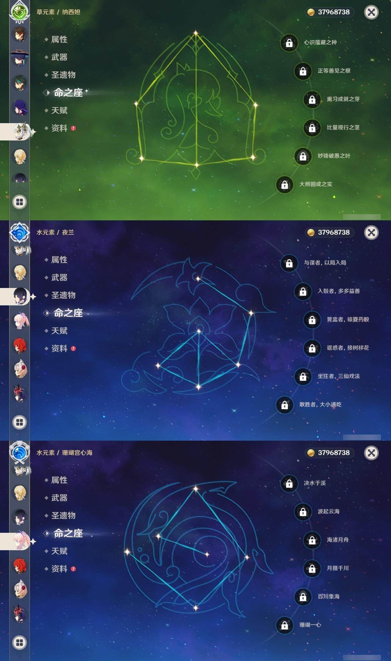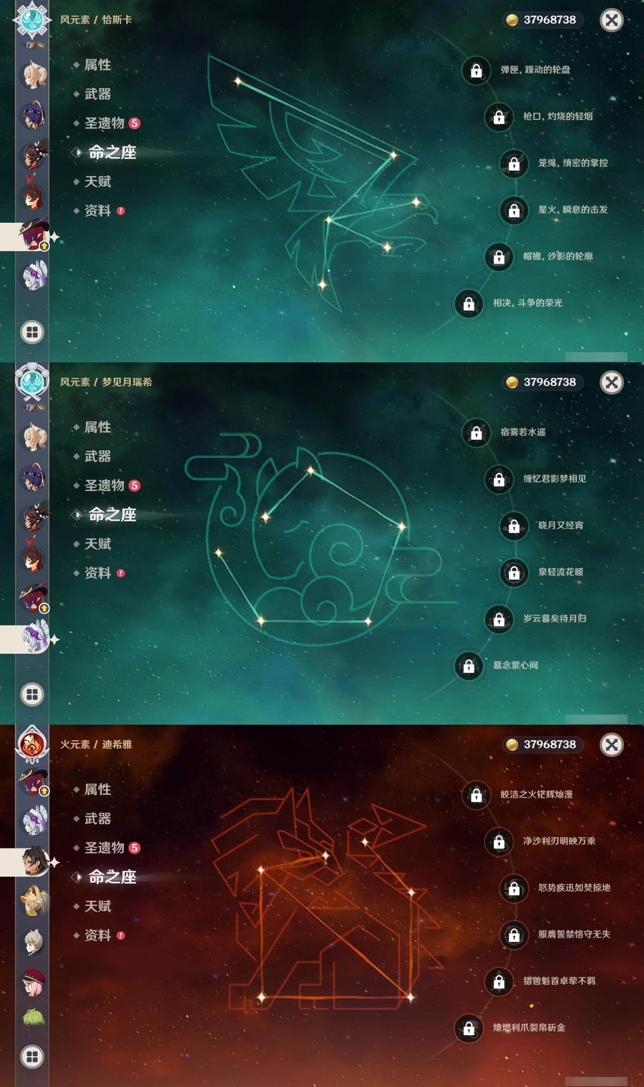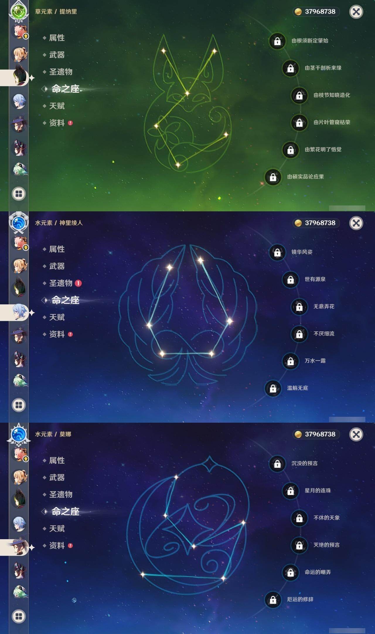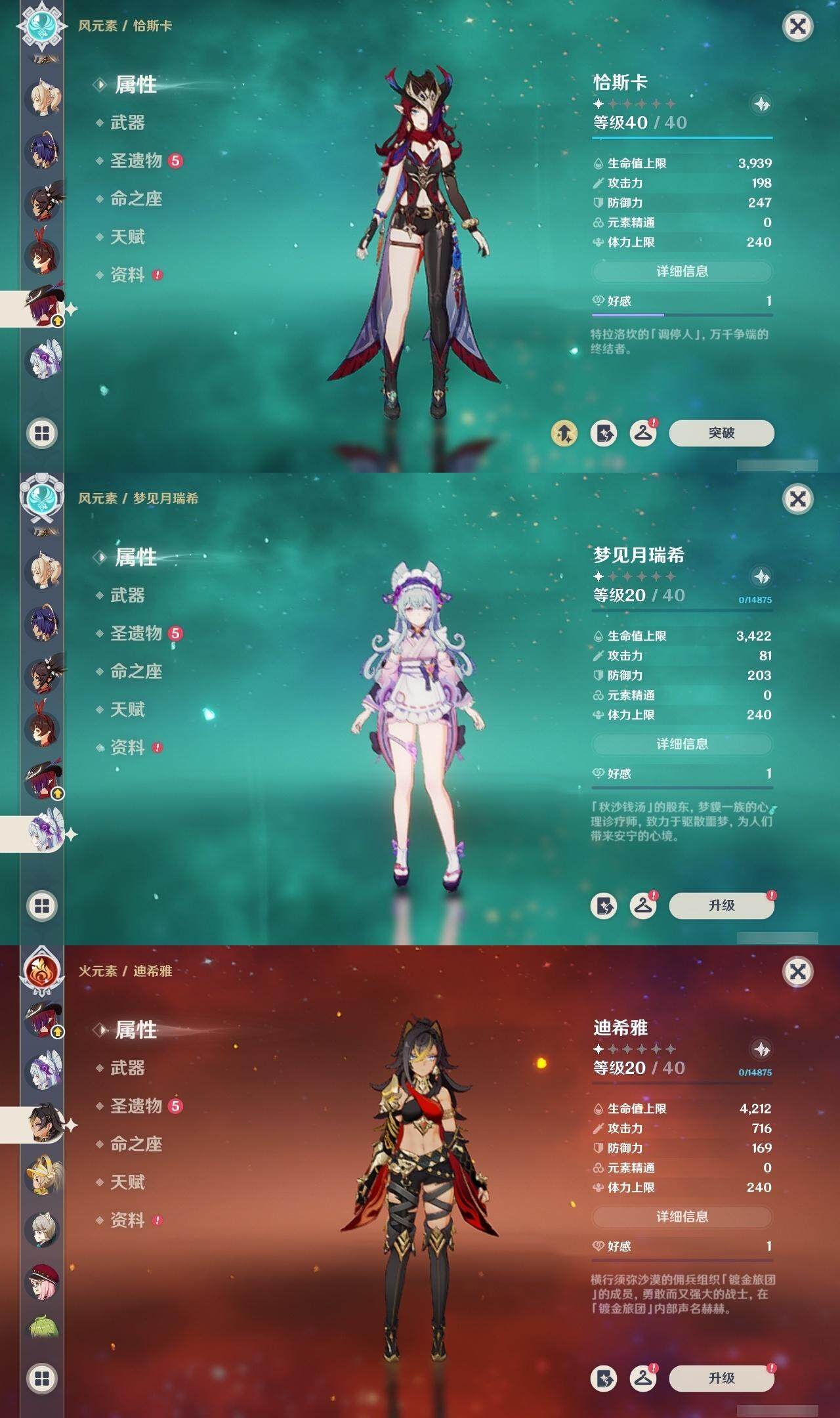 0命娜维娅,0命那维莱特,0命迪希雅,0命流浪者,0命纳西妲,0命妮露,0命赛诺,0命提纳里,0命夜兰,0命神里绫人,2命雷电将军,0命枫原万叶,0命神里绫华,0命钟离,0命魈,0命宵宫,0命可莉,0命达达利亚,0命阿贝多,0命珊瑚宫心海,3命刻晴,1命七七,3命琴,0命莫娜,3命迪卢克,0命恰斯卡,0命梦见月瑞希,精1裁断,精1千夜浮梦,精1赤沙之杖,精1圣显之钥,精1神乐之真意,精1息灾,精1冬极白星,精1薙草之稻光,精1雾切之回光,精1无工之剑,精1护摩之杖,精1四风原典,精1和璞鸢,精1天空之脊,精1阿莫斯之弓,精1天空之刃,精1风鹰剑,精1天空之傲