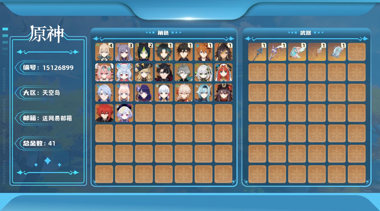[15126899]59级/41黄/男主/23个五星角色/5个五星武器