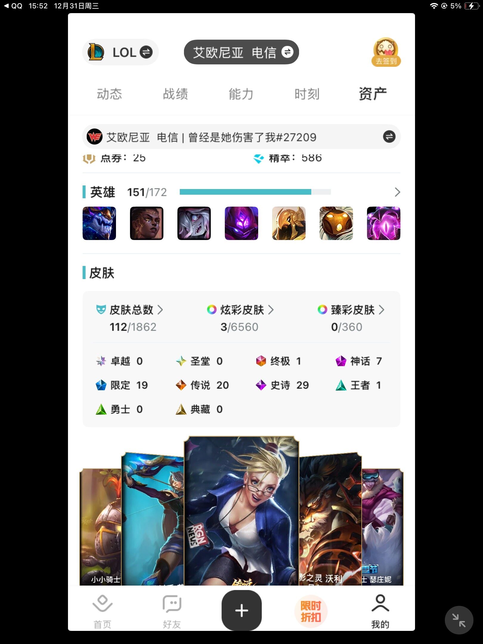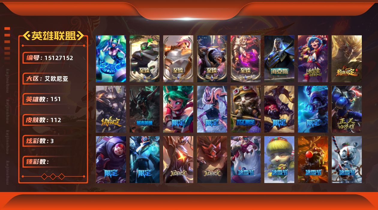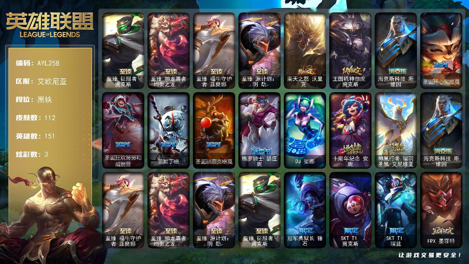 [15127152]【特价出售/店主推荐】黑铁段位-151英雄-112皮肤-3炫彩-1终极-7神话-19限定-20传说-29史诗