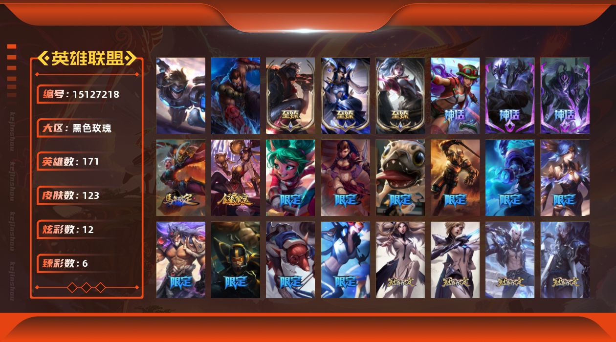 [15127218]【店主推荐捡漏号】白银段位-171英雄-123皮肤-12炫彩-2终极-6神话-25限定-19传说-19史诗