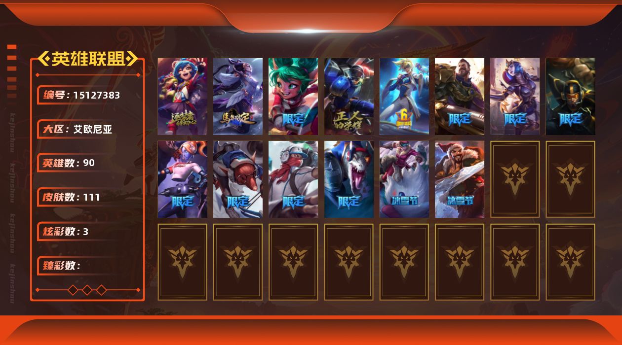 [15127383]【特价出售/店主推荐】未定级段位-90英雄-111皮肤-3炫彩-0终极-1神话-17限定-11传说-36史诗