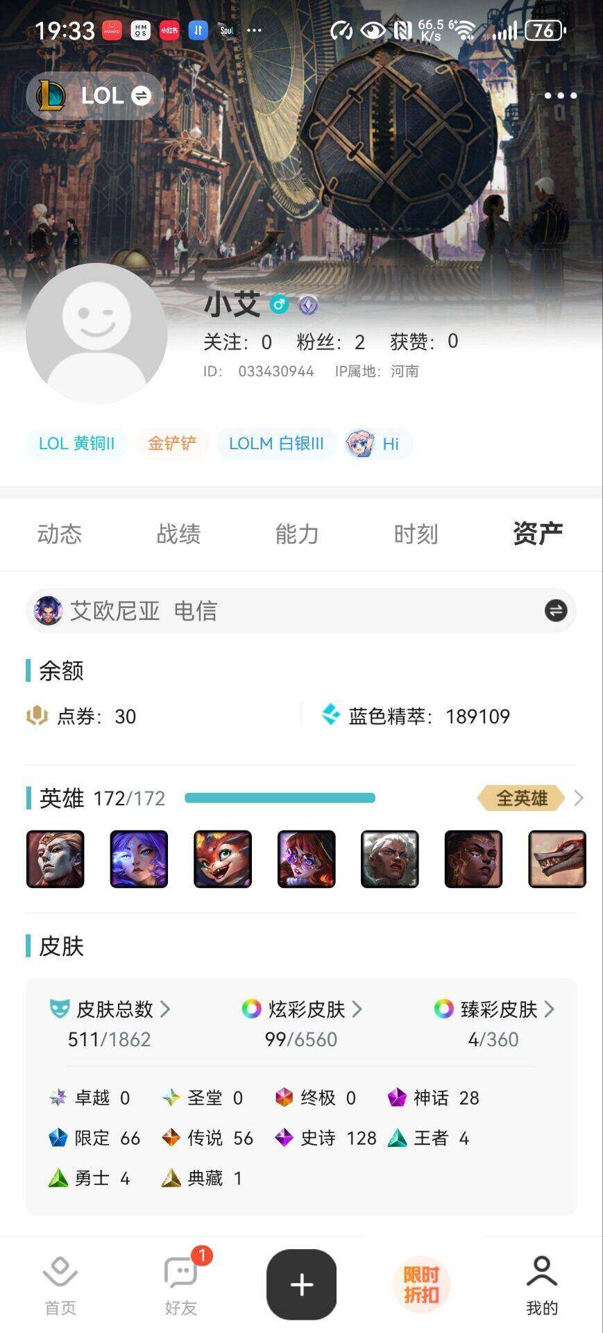 [15132404]可二次【特价出售/店主推荐】青铜段位-172英雄-511皮肤-99炫彩-0终极-28神话-66限定-56传说-128史诗