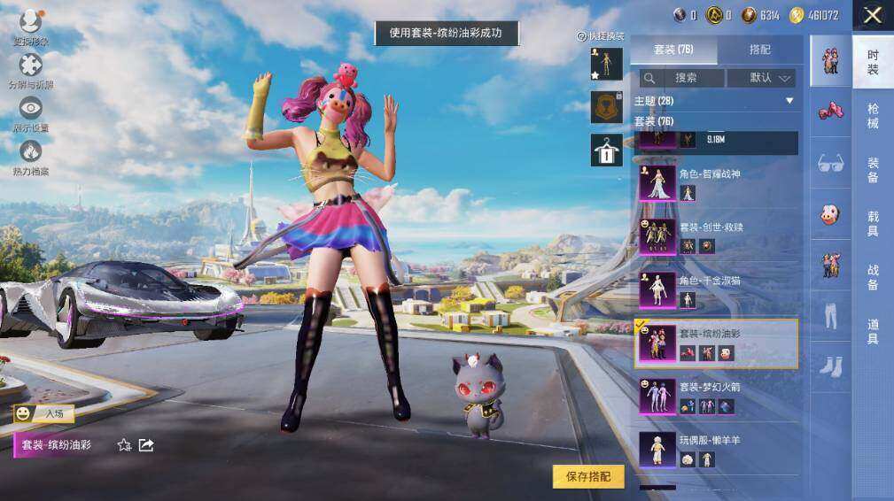 【粉色套装】:粉装-梦幻火箭,粉装-缤纷油彩,套装-创世·救赎,角色-金域紫灵,角色-千金淑猫,角色-女娲灵识,角色-智耀战神,角色-凤凰座 一辉,粉装-星穹咏叹调