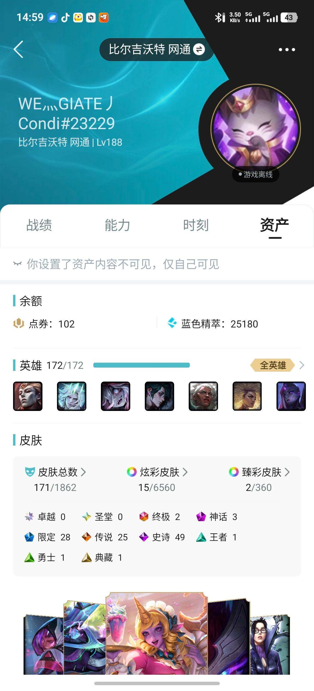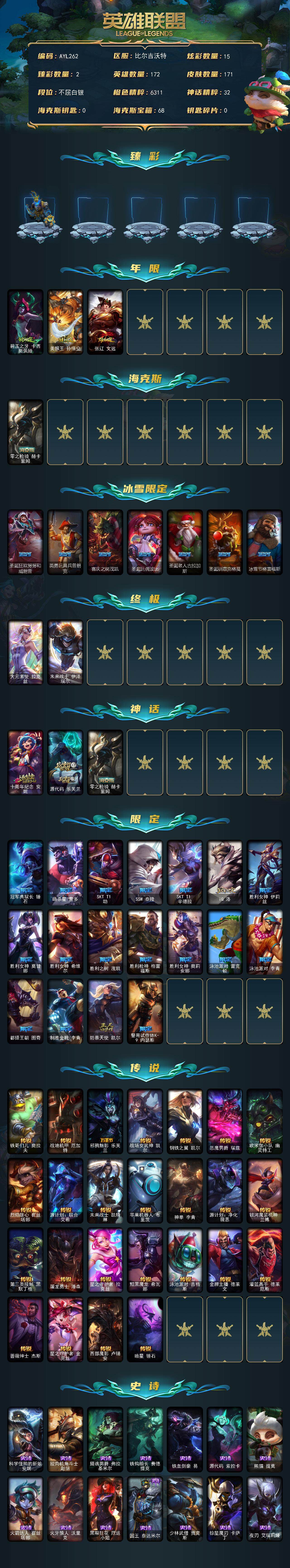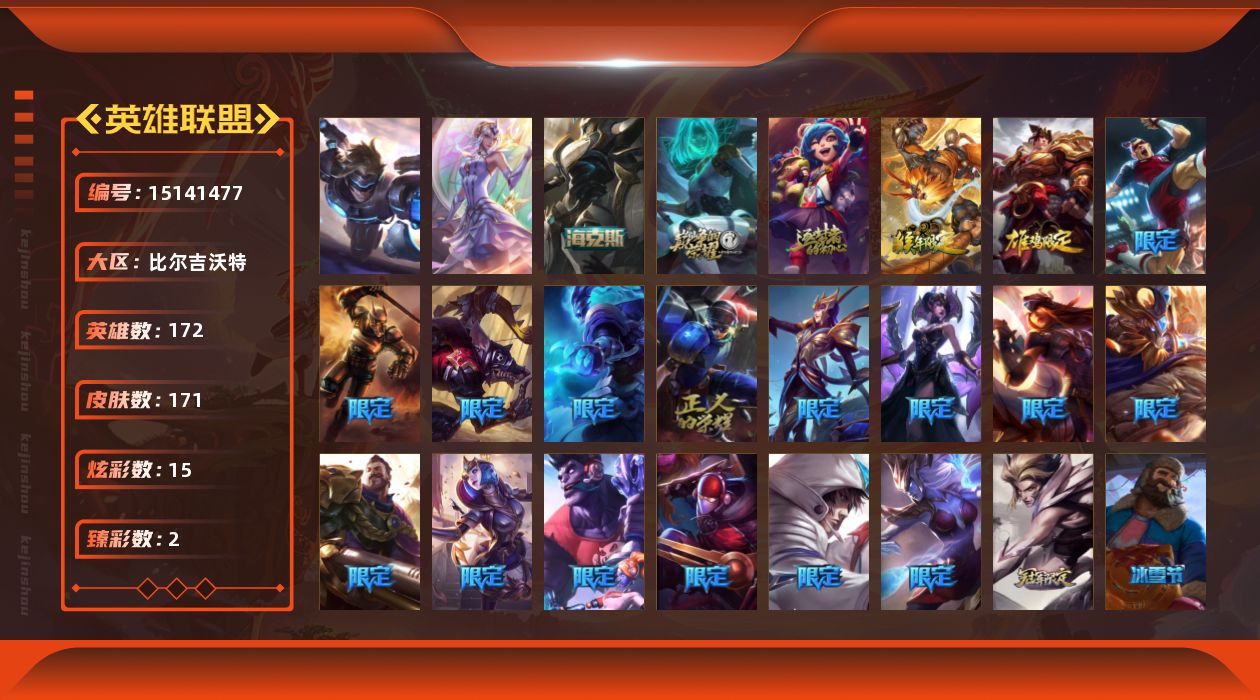 [15141477]【店主推荐捡漏号!可直接换绑】白银段位-172英雄-171皮肤-15炫彩-2终极-3神话-28限定-25传说-49史诗
