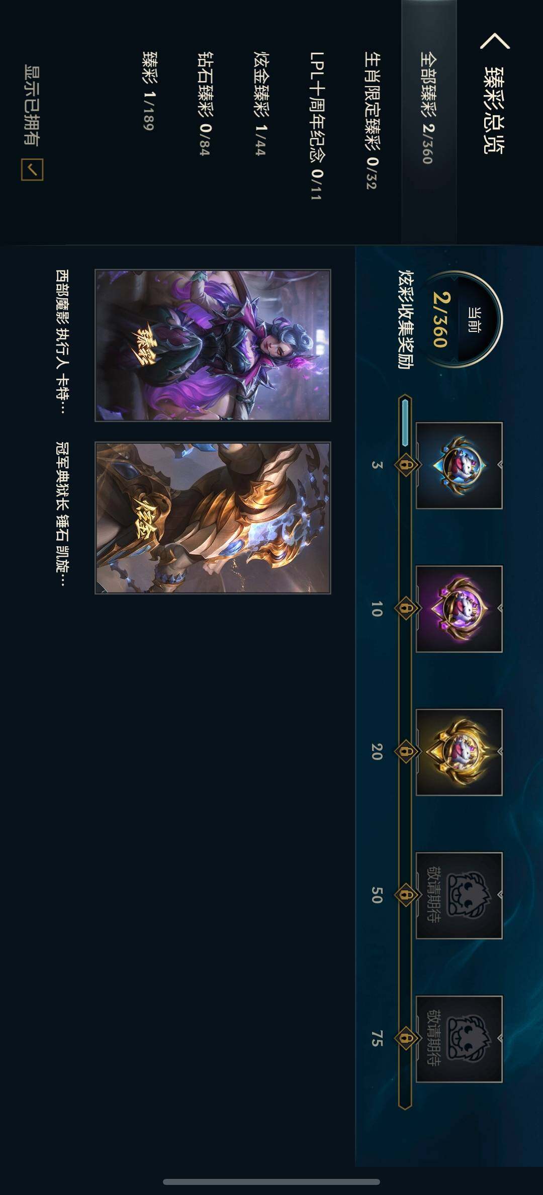 【臻彩皮肤】:冠军典狱长锤石凯旋圣装,西部魔影执行人卡特琳娜纯洁