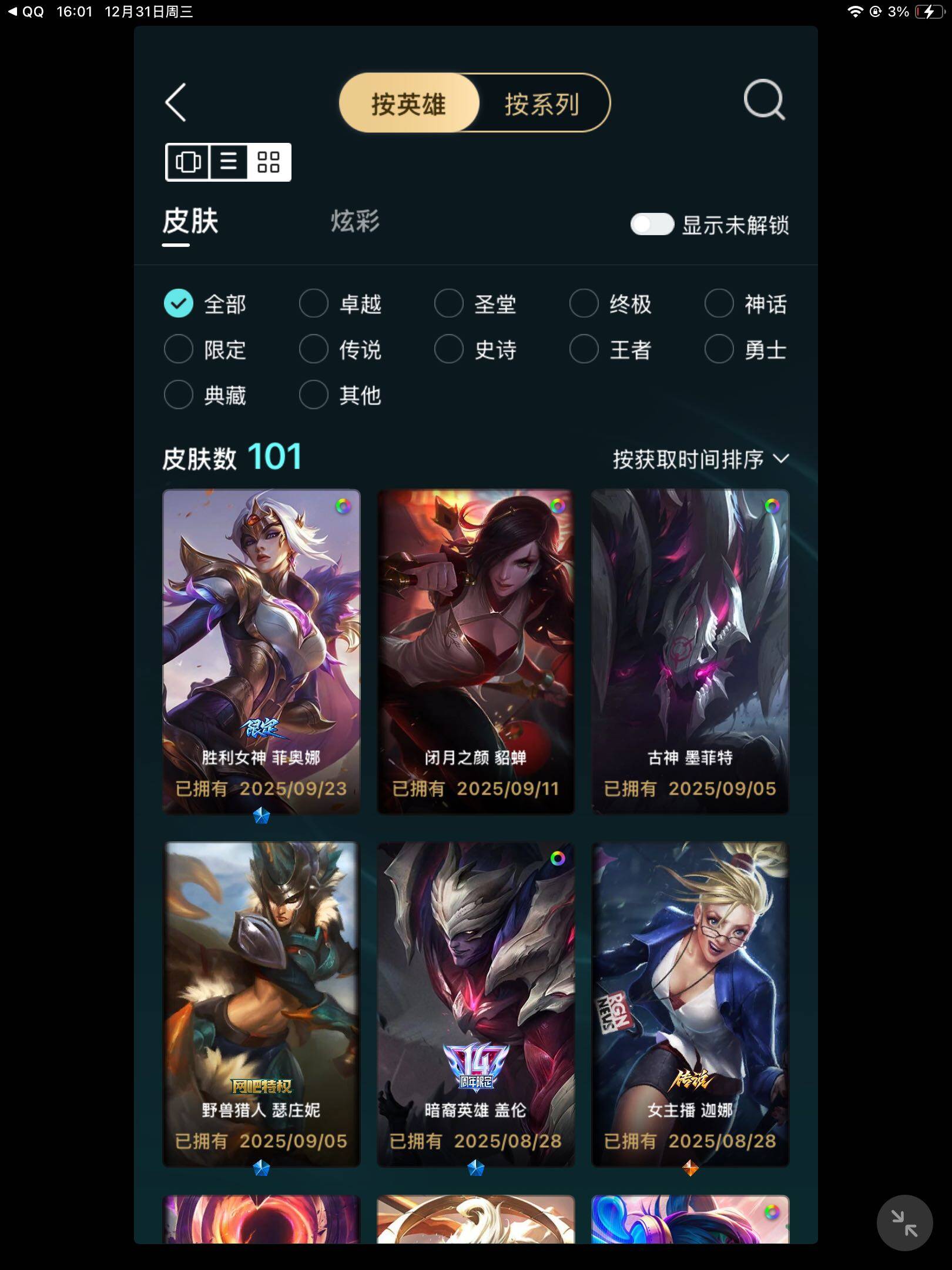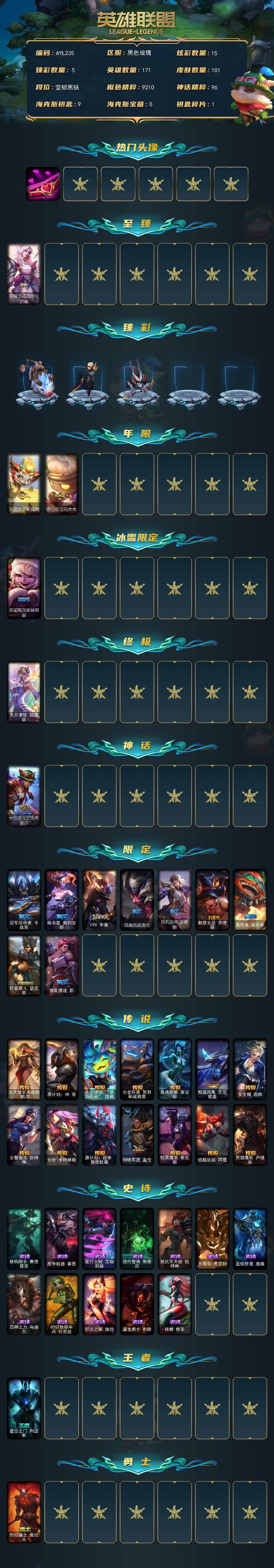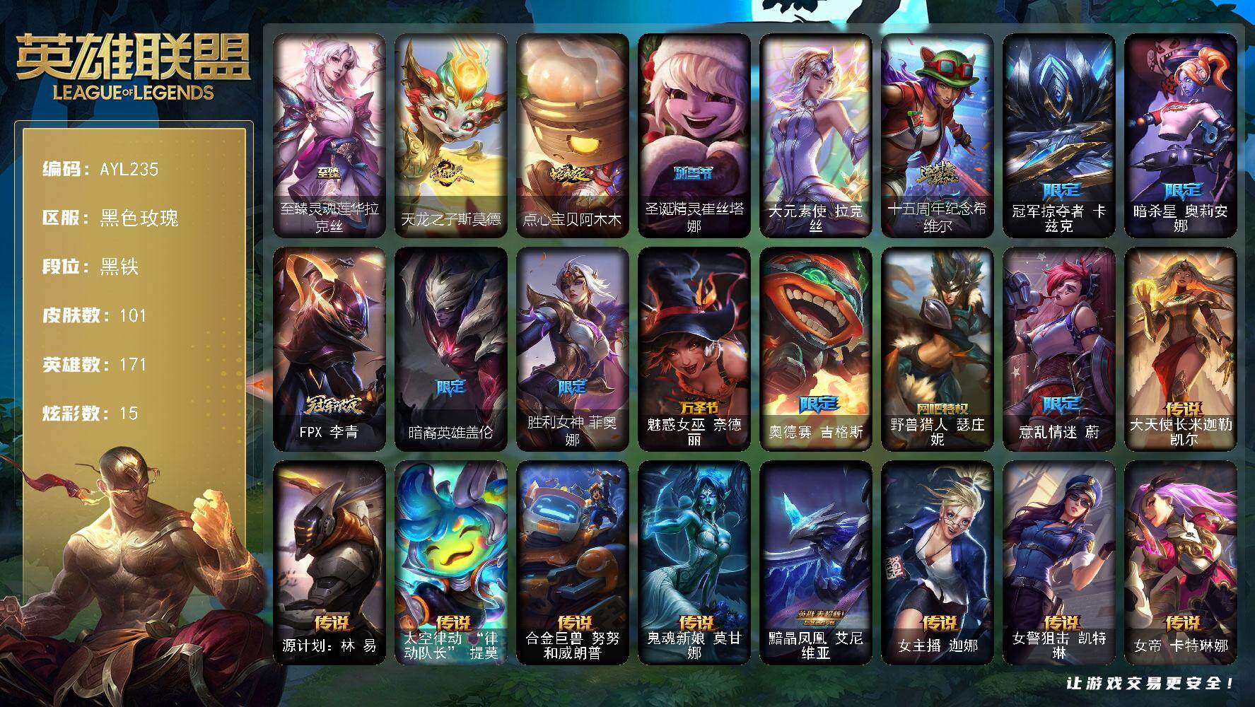 [15141742]【特价出售/店主推荐】黑铁段位-171英雄-101皮肤-15炫彩-1终极-2神话-12限定-14传说-12史诗