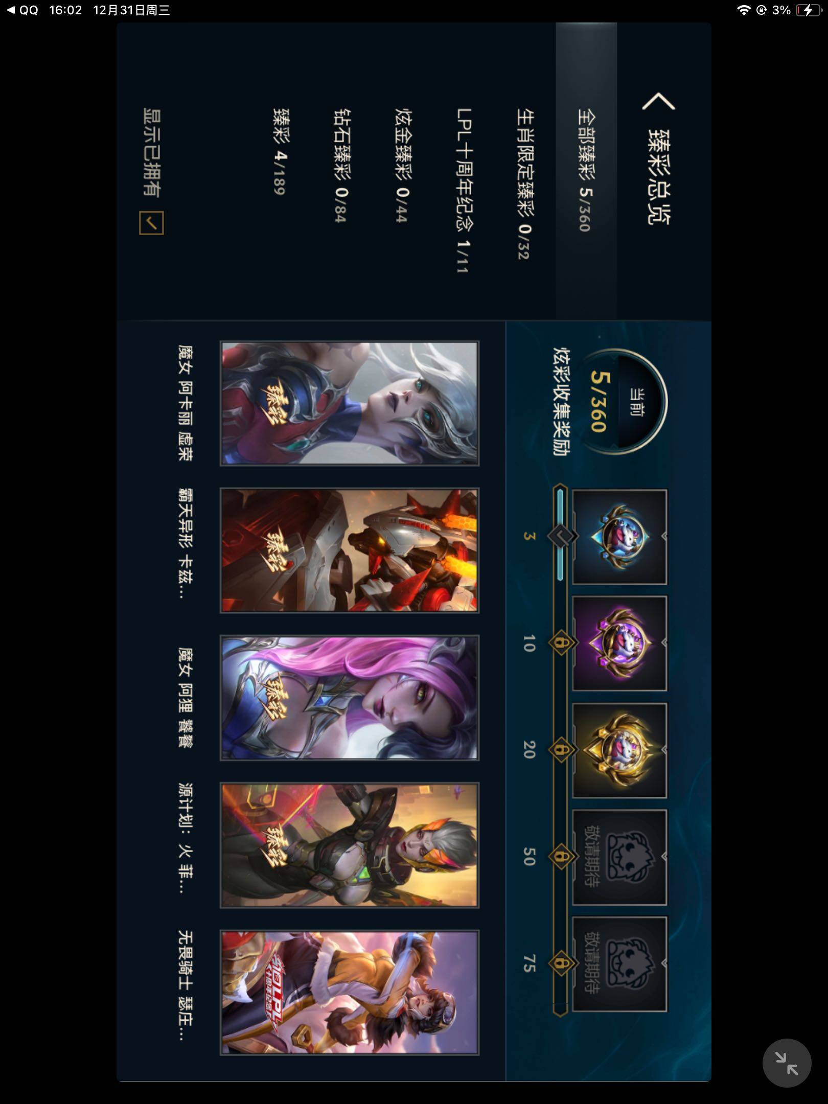 【臻彩皮肤】:无畏骑士瑟庄妮赤子初心,源计划火菲奥娜惩戒,霸天异形卡兹克刹那银光,魔女阿卡丽虚荣,魔女阿狸饕餮