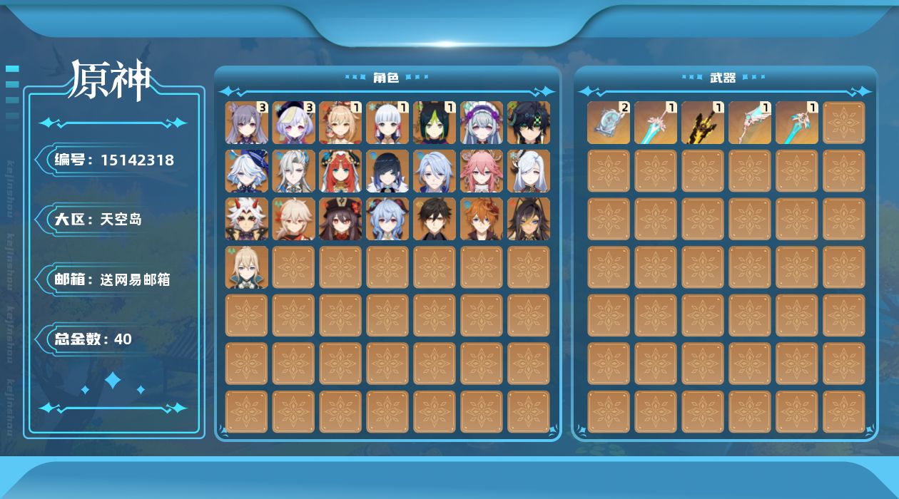 [15142318]59级/40黄/男主/23个五星角色/6个五星武器