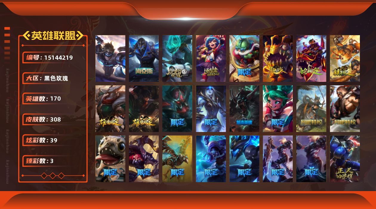 [15144219]可直接换绑!白银段位-170英雄-308皮肤-39炫彩-1终极-4神话-42限定-23传说-81史诗