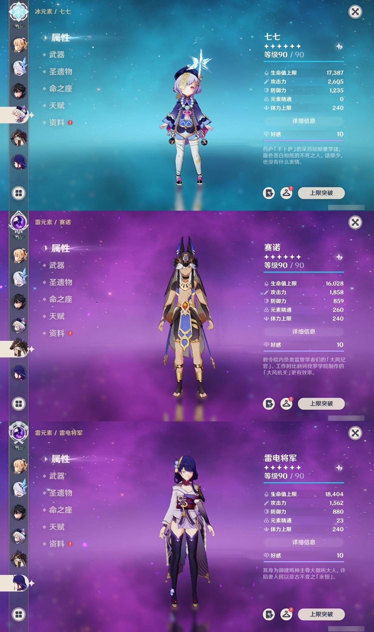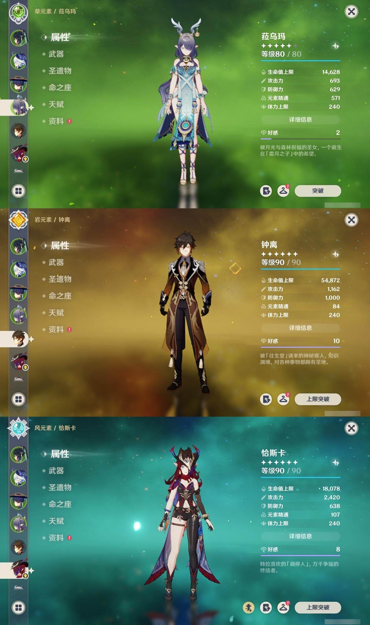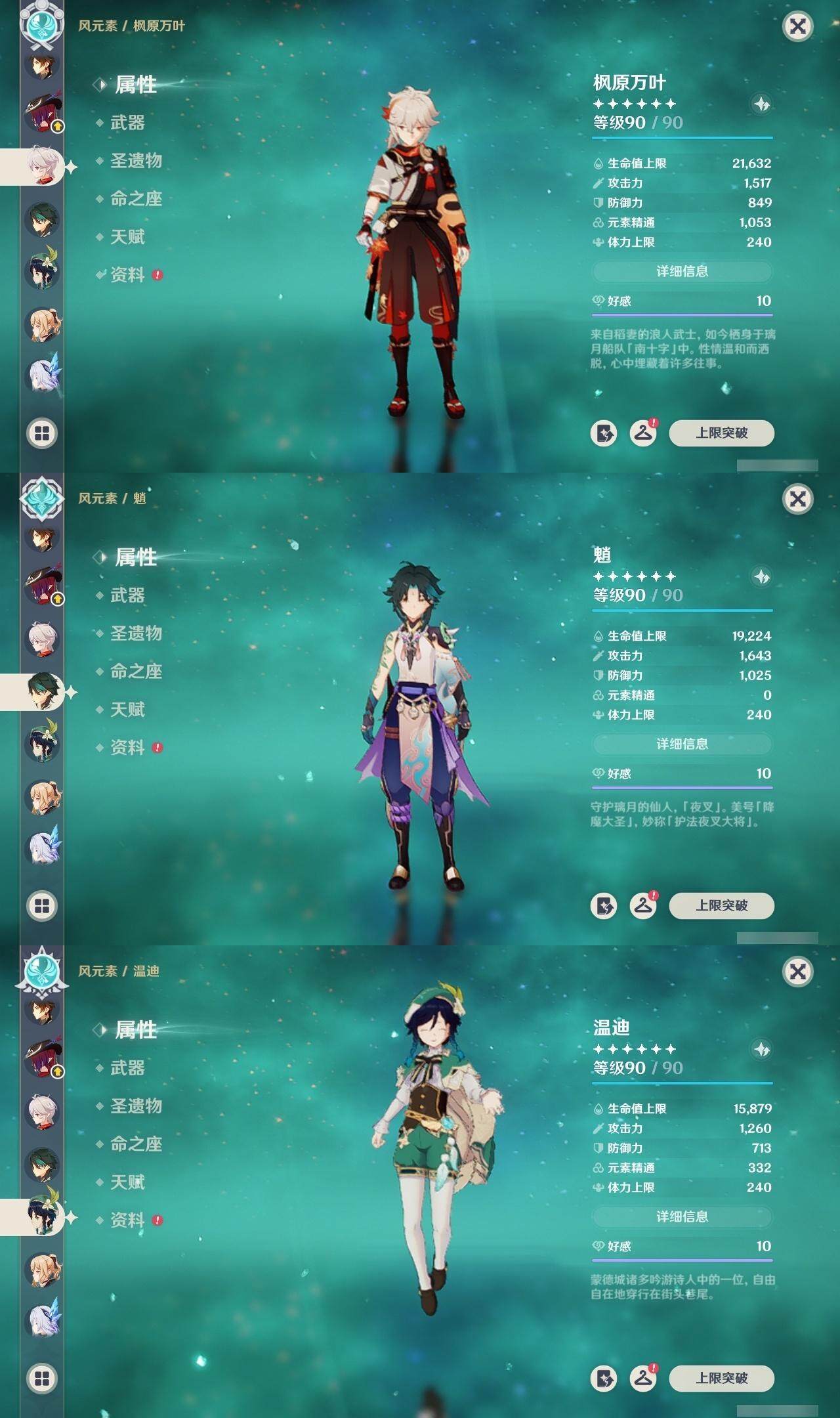 钟离,枫原万叶,魈,温迪,琴,七七,雷电将军,莫娜,达达利亚,宵宫,胡桃,刻晴,迪卢克
