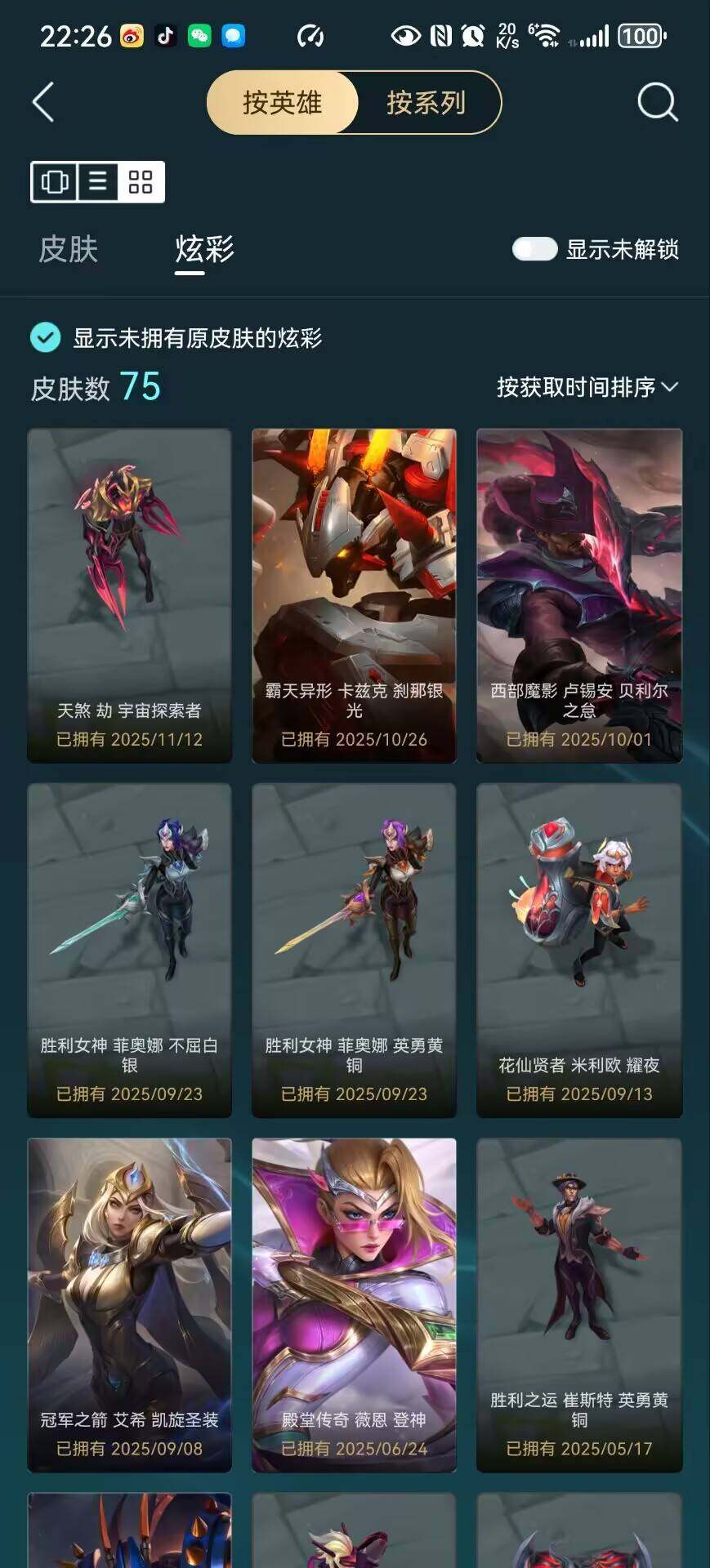【臻彩皮肤】:无畏骑士瑟庄妮赤子初心,冠军之箭艾希凯旋圣装,霸天异形卡兹克掠空魅影,西部魔影卢锡安贝利尔之怠,霸天异形卡兹克刹那银光,星之守护者卡莎热情之光,可爱可爱粉红红布里茨,魔女阿卡丽虚荣